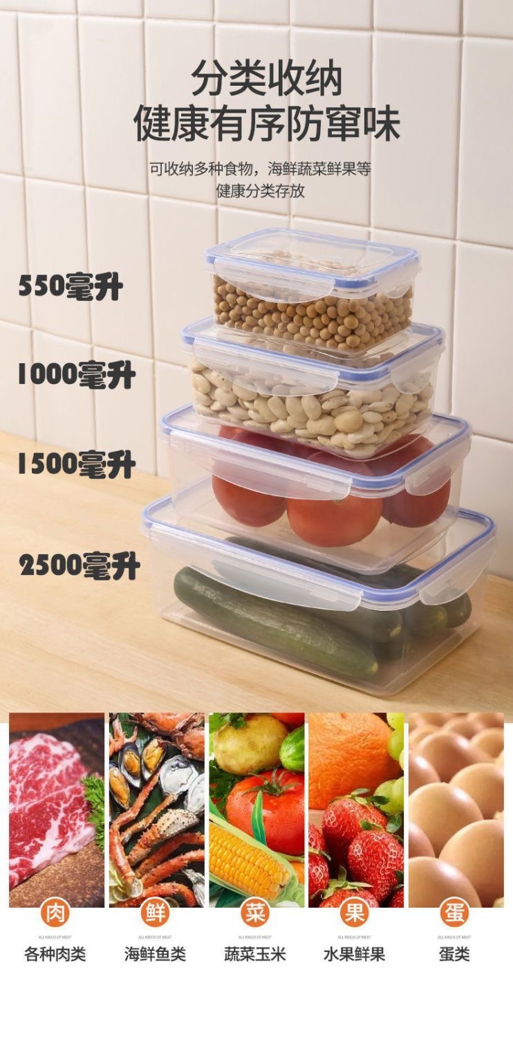 商品名称:合恒工品厨房冰箱保鲜盒微波耐热塑料饭盒水果收纳盒长方形密封带盖