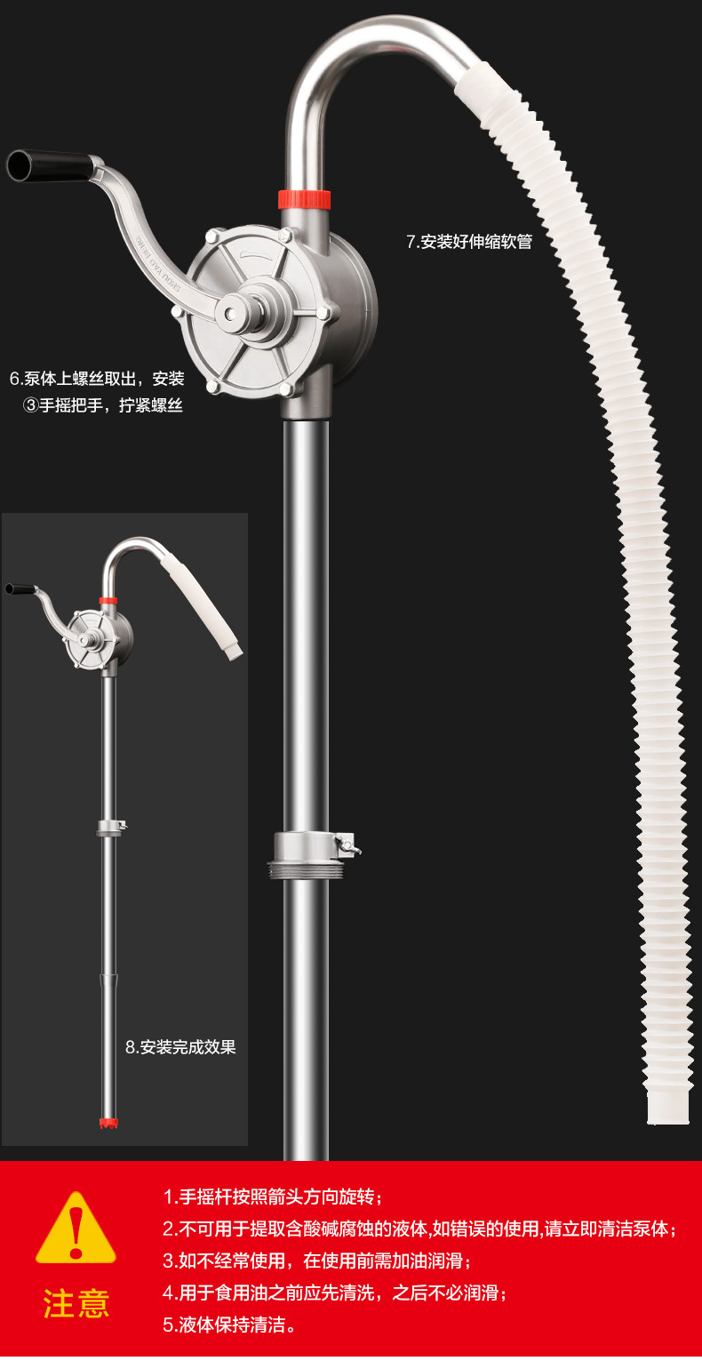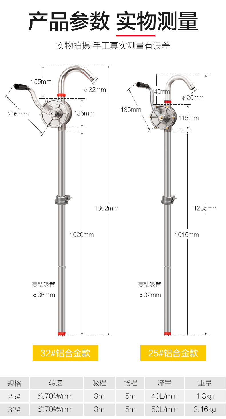 包装清单:1英迈油桶抽油泵手动汽车家用吸油管铝合金油抽子自吸手摇油泵机