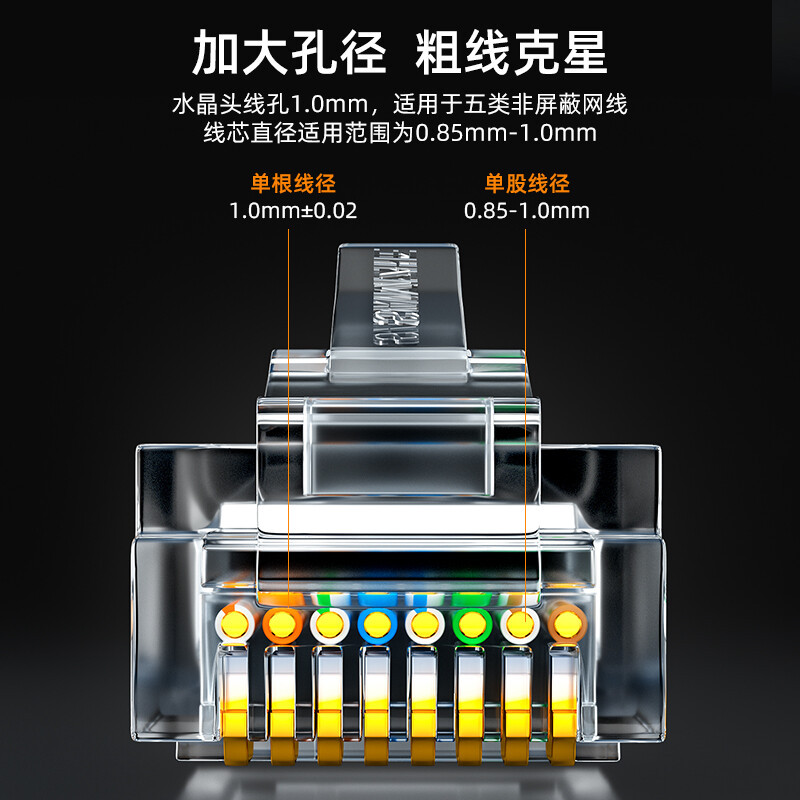 六类千兆水晶头6类非屏蔽超六类屏蔽8PRJ45水晶头WL-6100