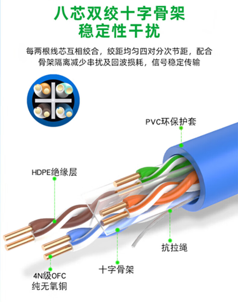 商品名称: H1610042-D 六类非屏蔽网线 305.00 米/箱 (计价单位:箱) 蓝色