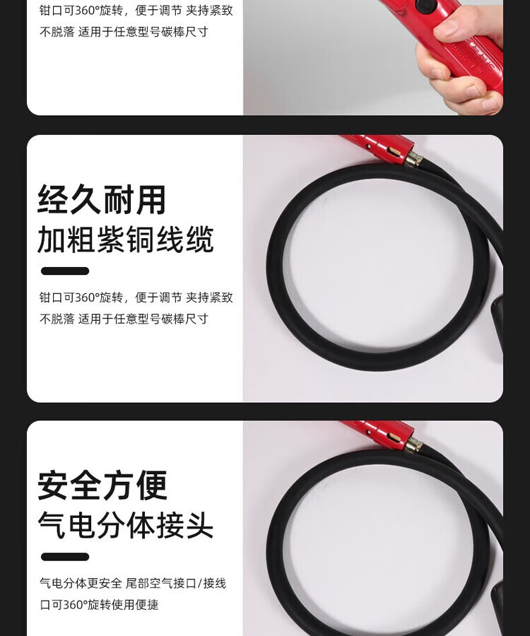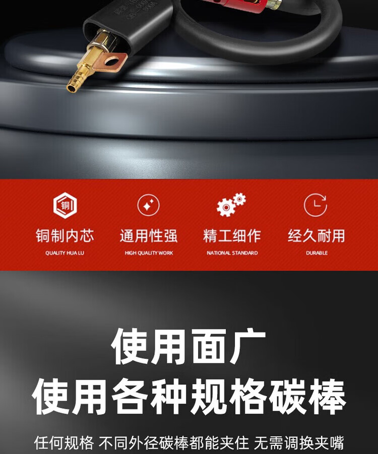 包装清单:1乌龙碳弧气刨炬枪头带线碳弧600A气刨钳气刨碳棒 QB-800A带线整枪