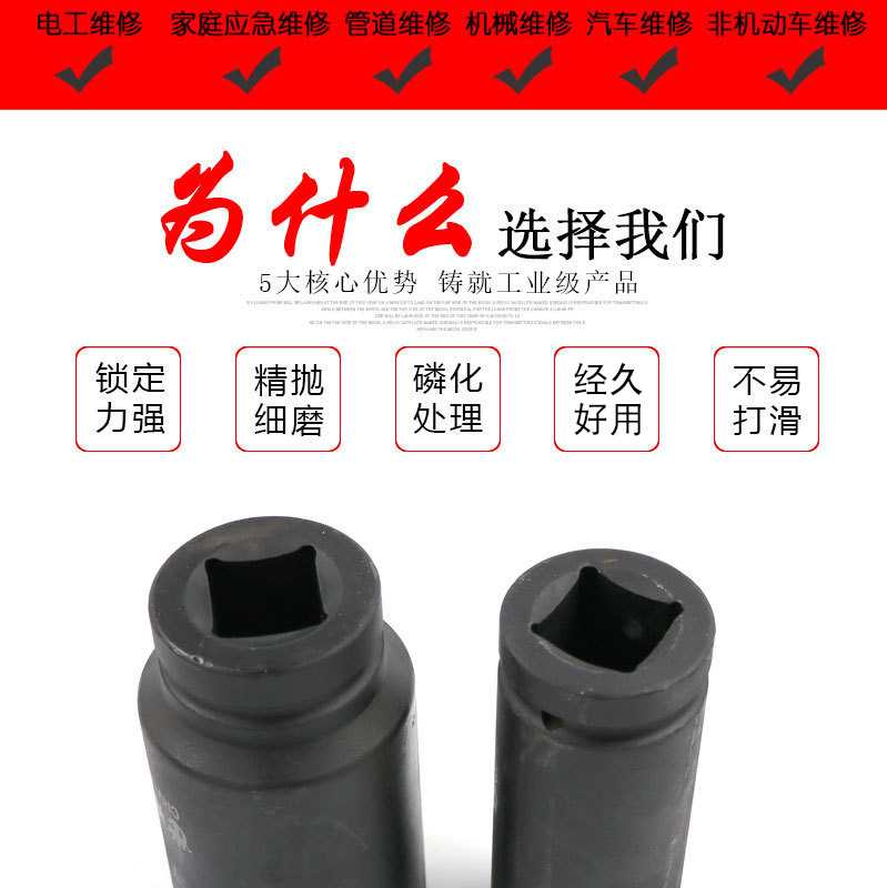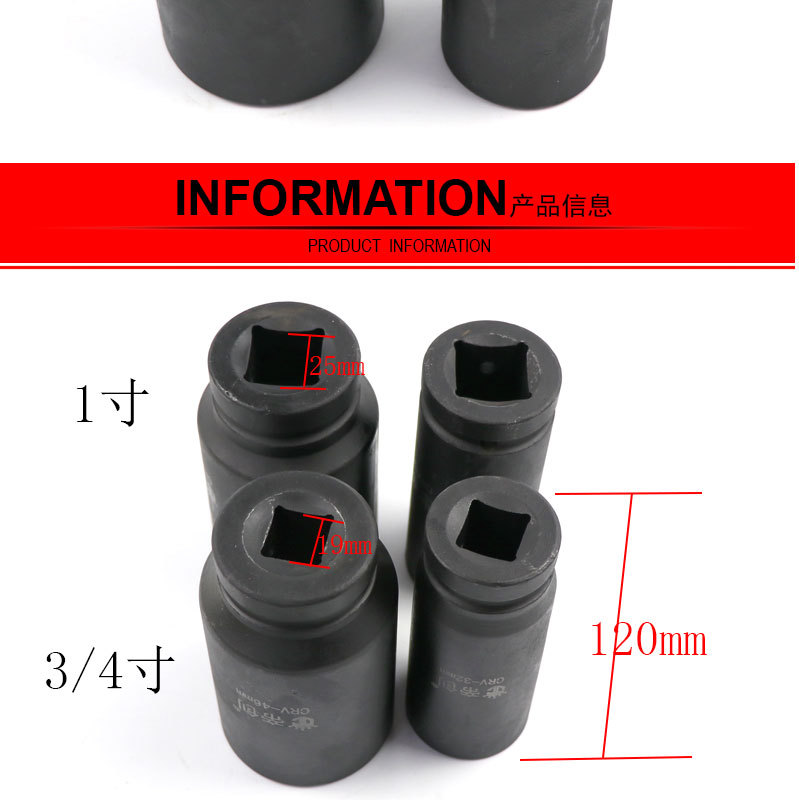 包装清单:1风炮套筒头加长120mm3/4重型套筒1寸气动套筒头五金工具