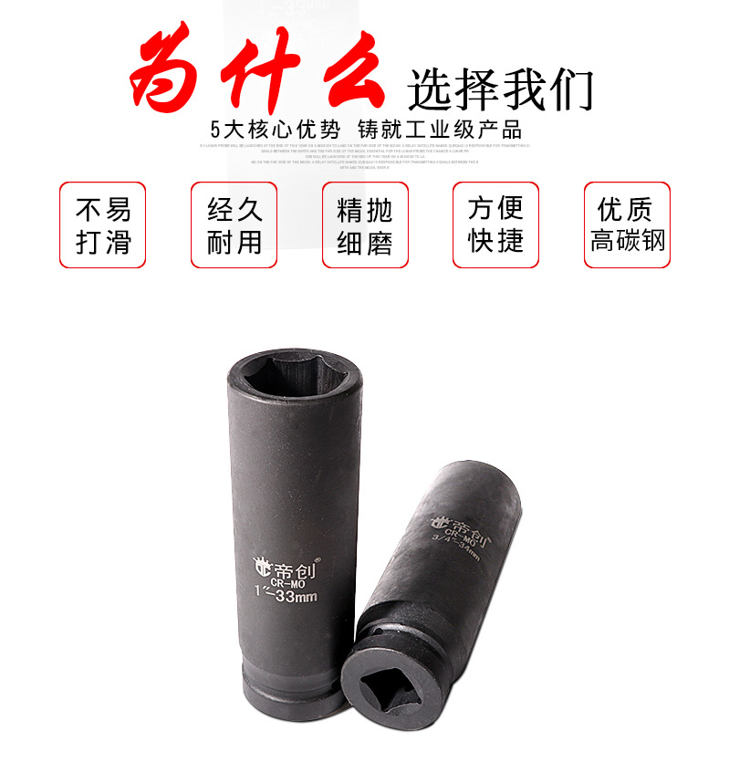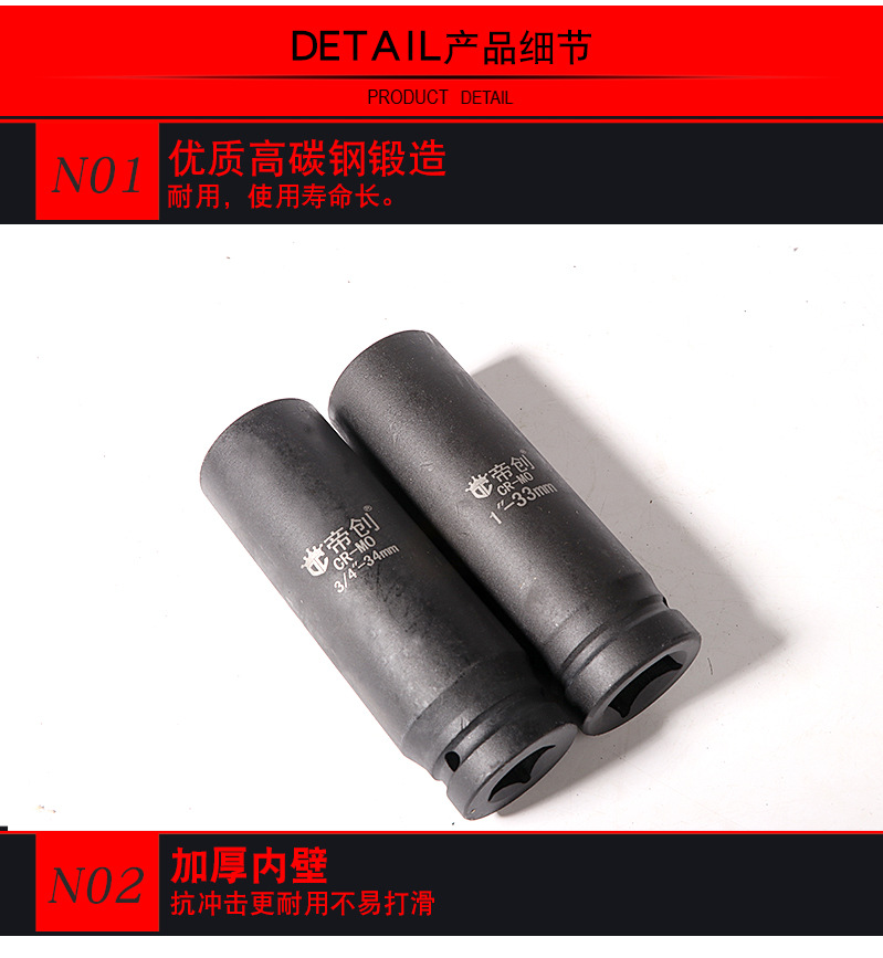 包装清单:1重型1寸3/4寸150加长风炮套筒加厚汽修工具气动扳手