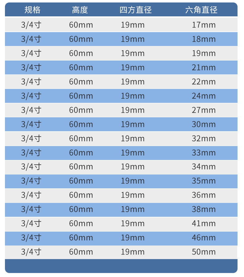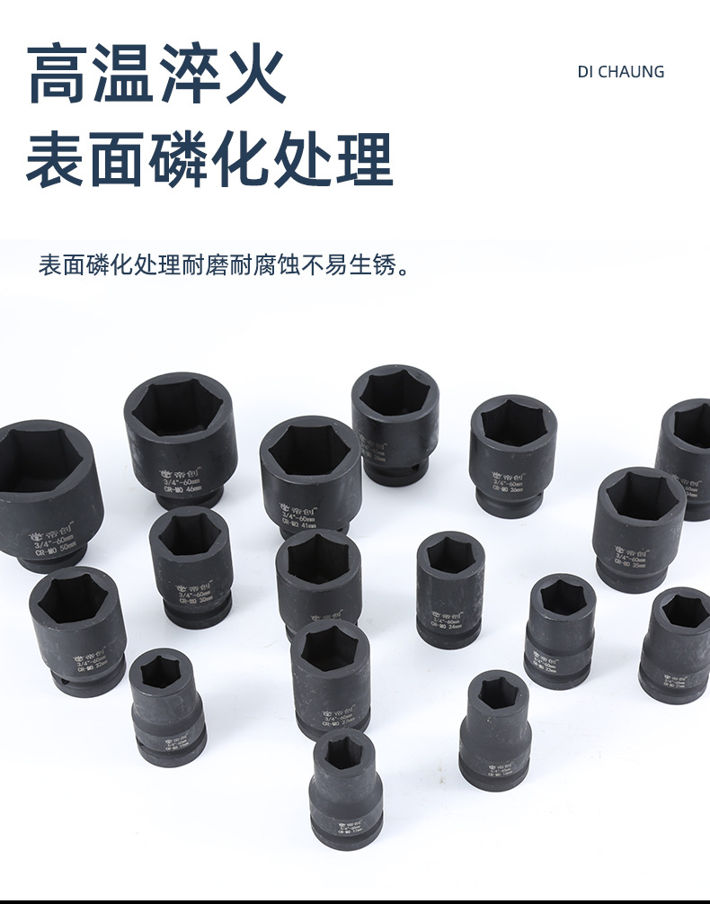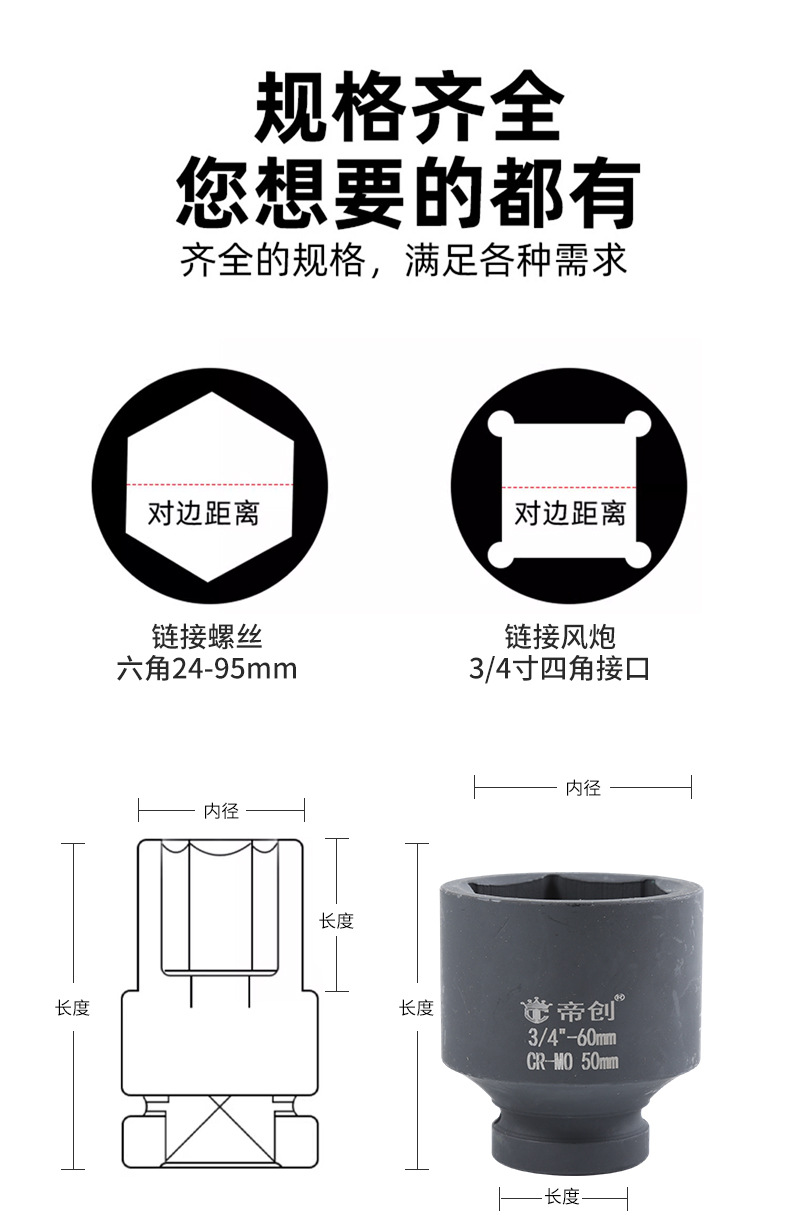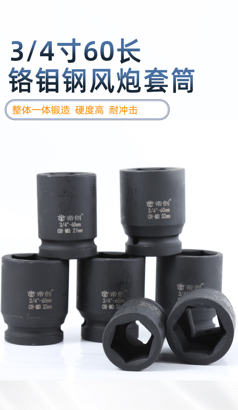 商品名称:帝创3/4寸气动60长六角套筒头汽车轮胎维修套筒扳手