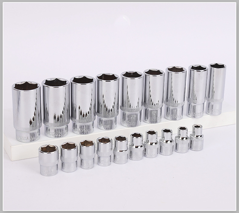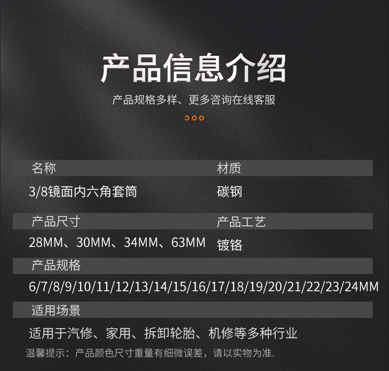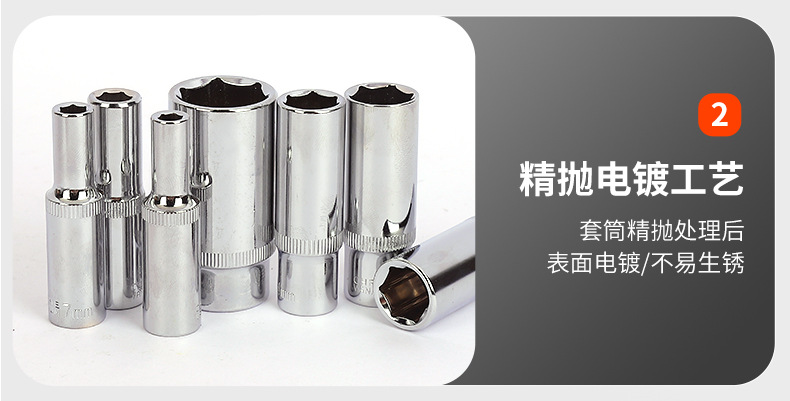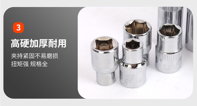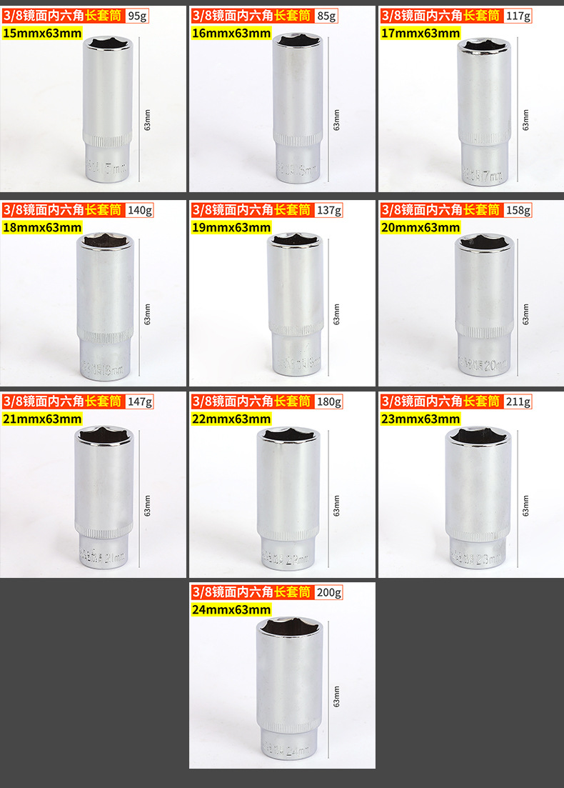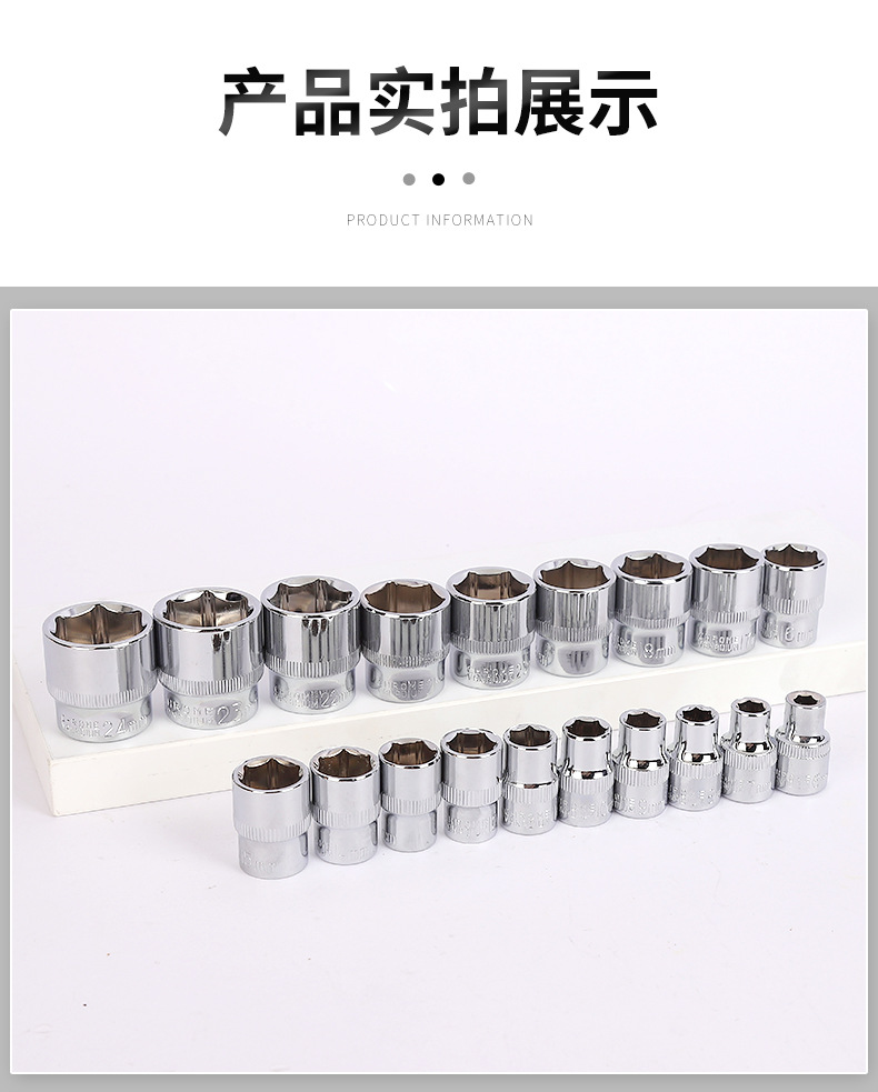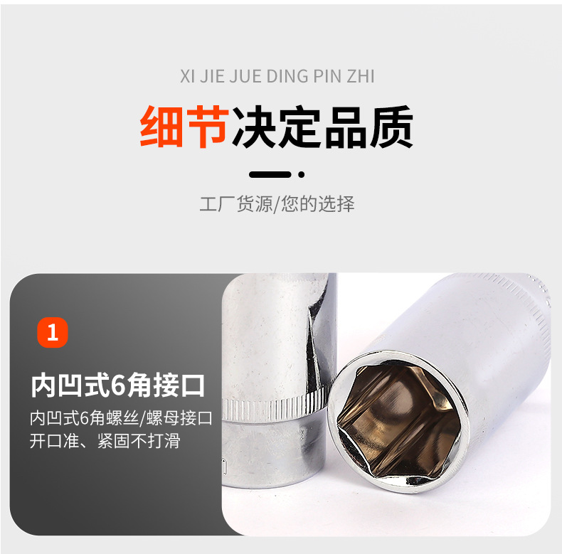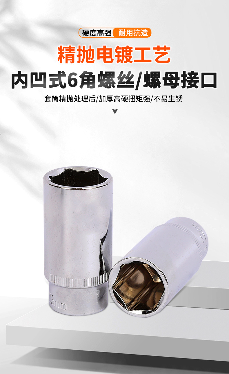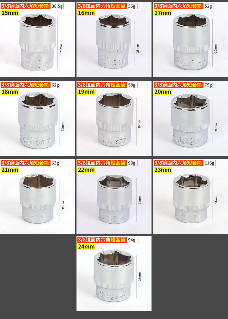 包装清单:13/8六角套筒10mm系列6角中飞短套头铬钒钢镜面公制套筒头
