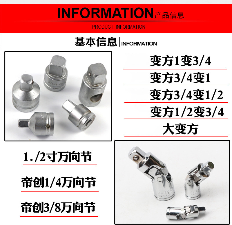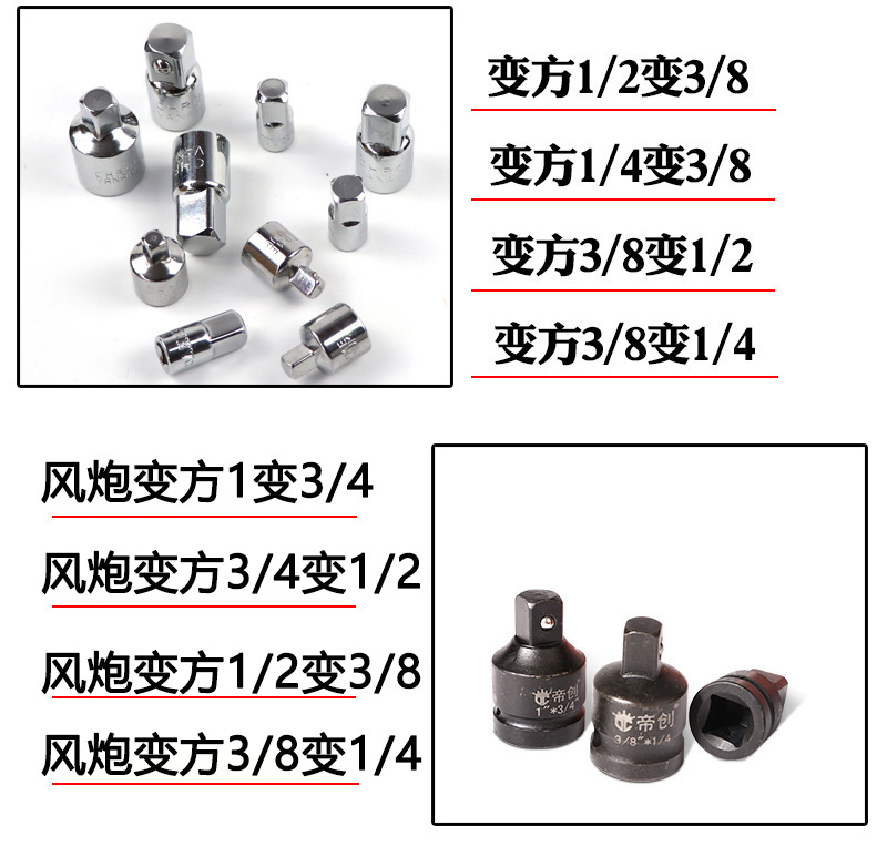 多规格套筒变方转接头 1/2转3/8转1/4汽修工具变换头变径套筒