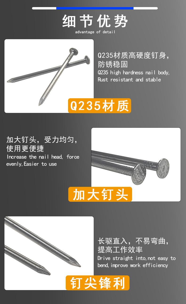 商品名称:合恒工品铁钉圆钉洋钉木工钉圆钢钉8分1寸1.5寸2寸3寸4寸6寸