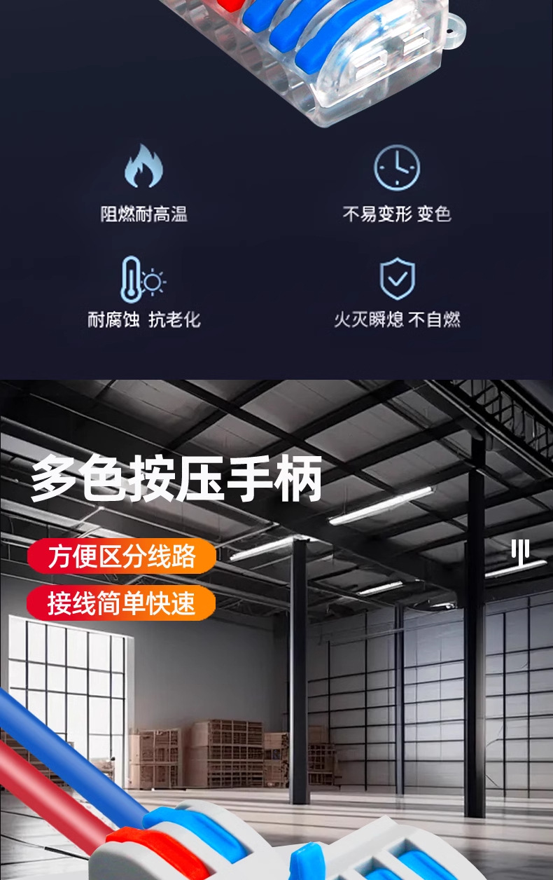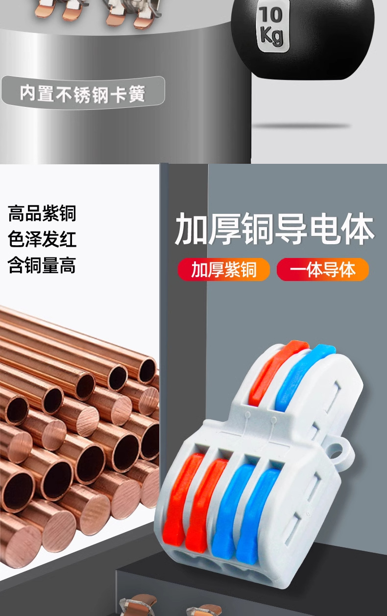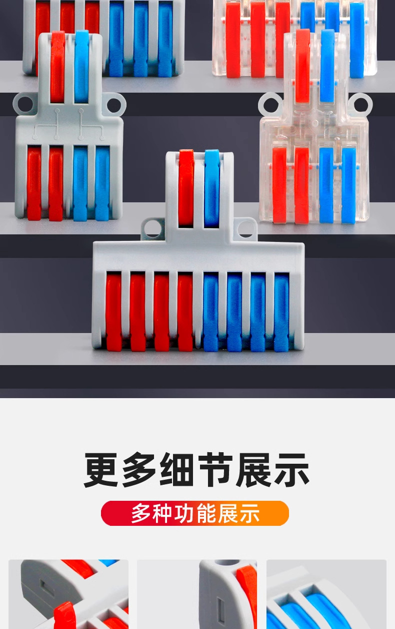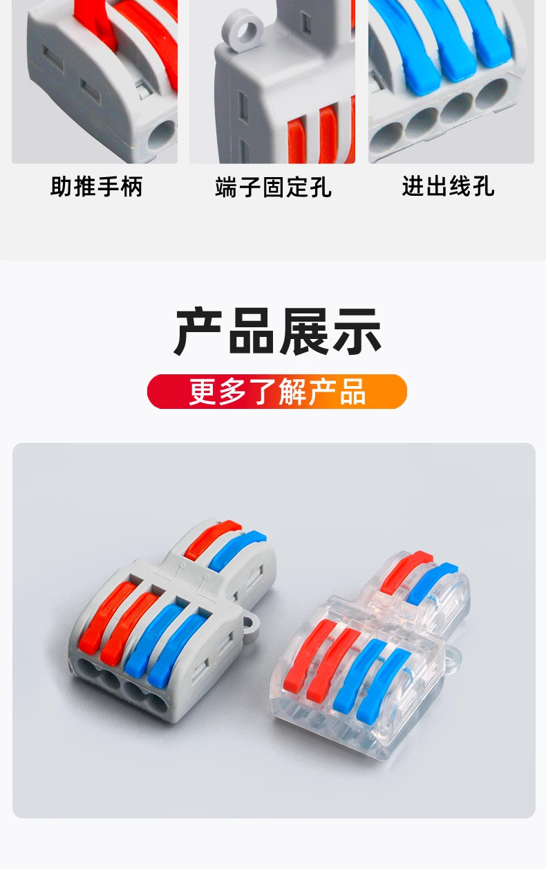 包装清单:1按压式接线器快速接线端子SPL二进多出电线连接器分线器并线器
