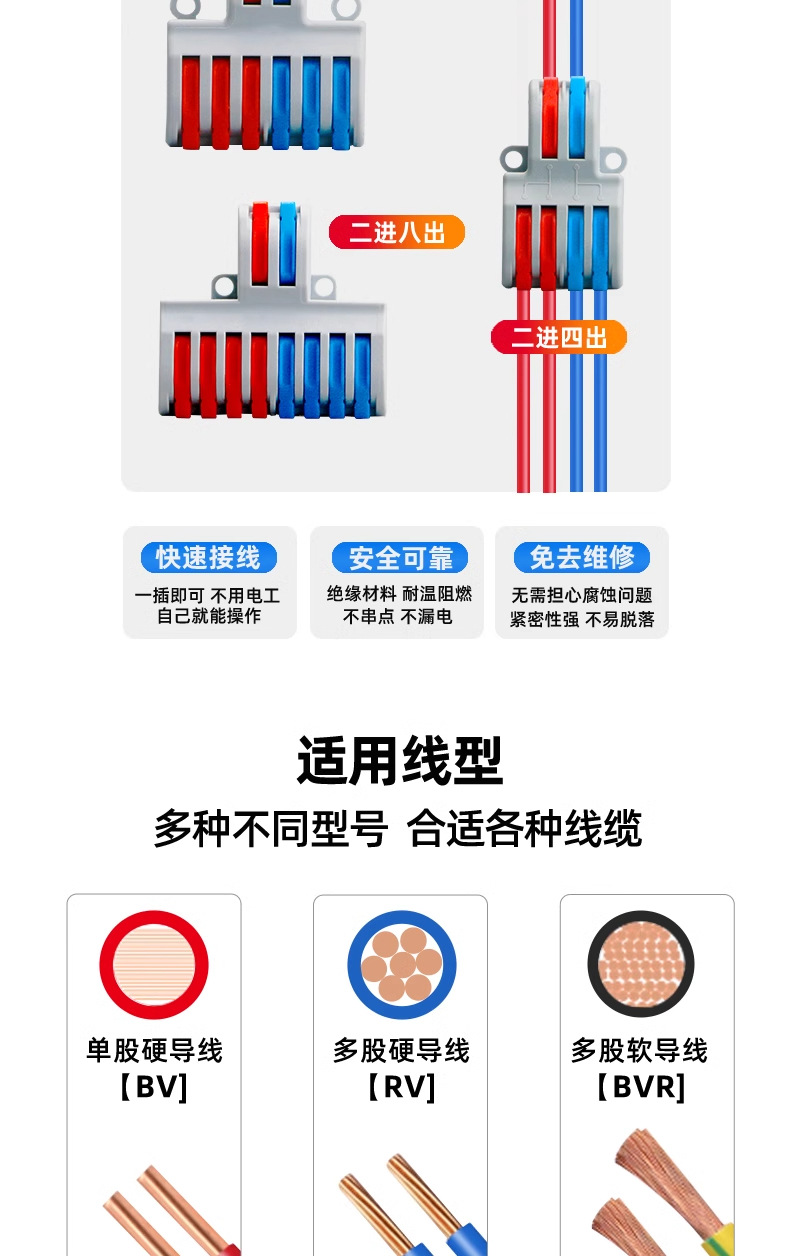 商品名称:按压式接线器快速接线端子SPL二进多出电线连接器分线器并线器