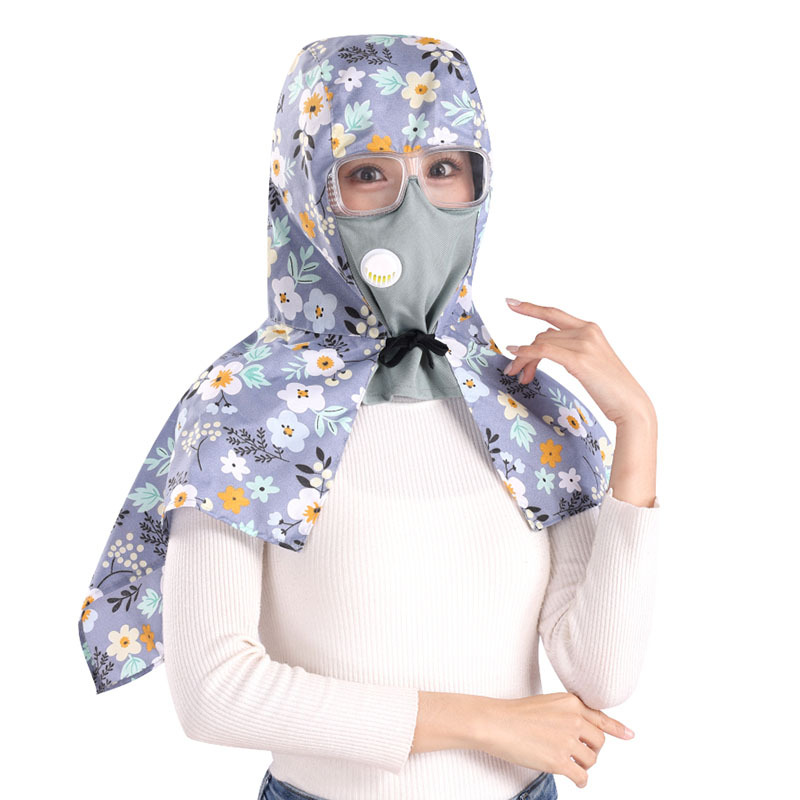 防尘帽头部防护披肩帽大护目镜带呼吸阀男女同款劳保防晒头套风帽
