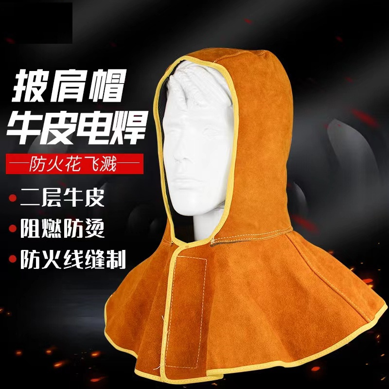 商品名称:工厂牛皮焊工 电焊帽 劳保电焊帽 防火花电焊防护牛皮披肩帽