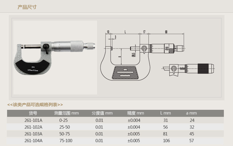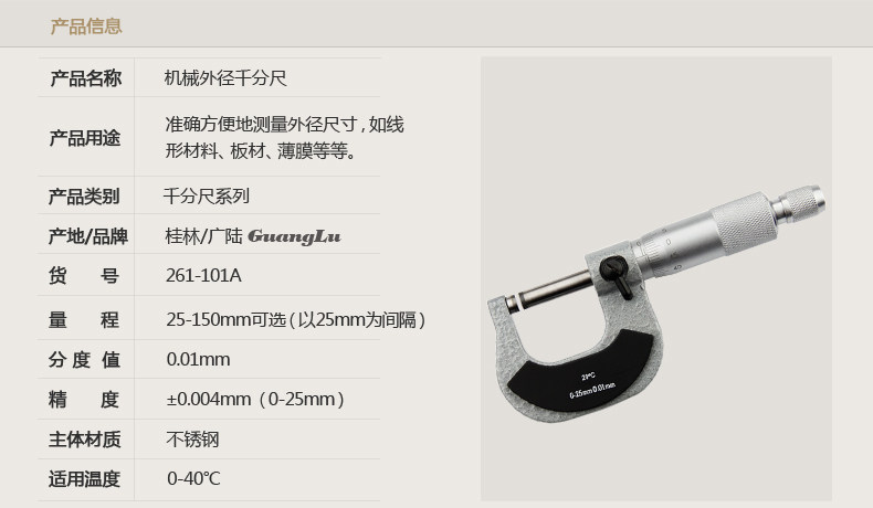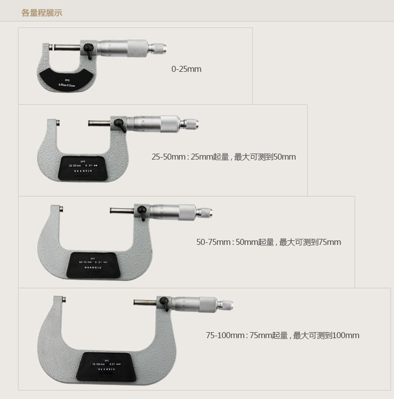 商品名称:广陆外径千分尺0-25-50-75-100-125微米分厘卡螺旋测微