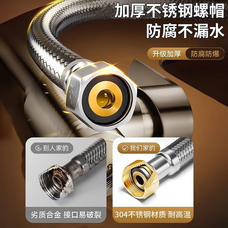 软管4分双头金属钢丝304不锈钢编织热水器马桶水龙头进水管花洒