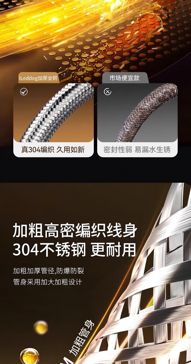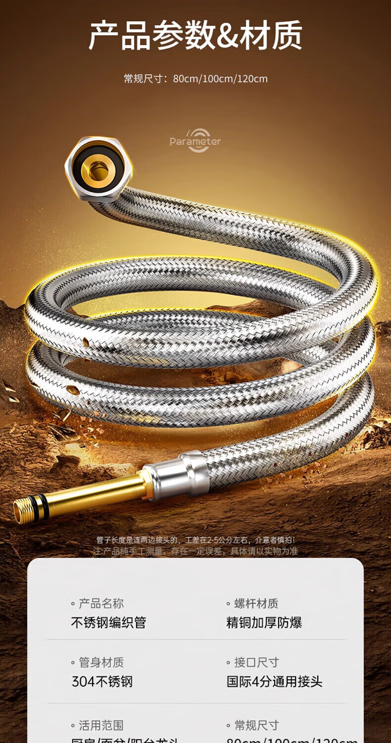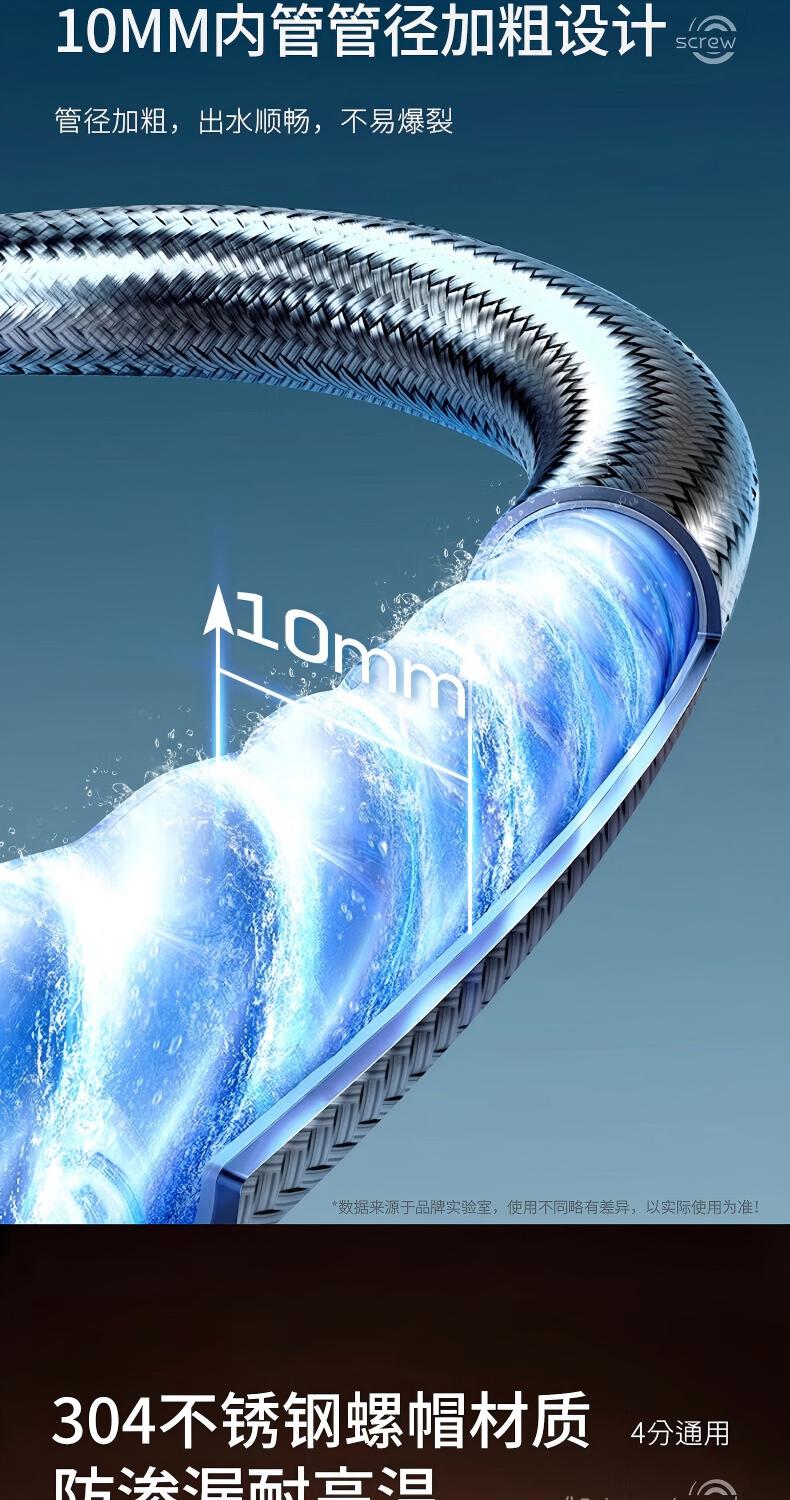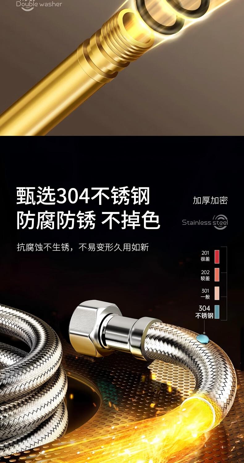 包装清单:1软管4分双头金属钢丝304不锈钢编织热水器马桶水龙头进水管花洒
