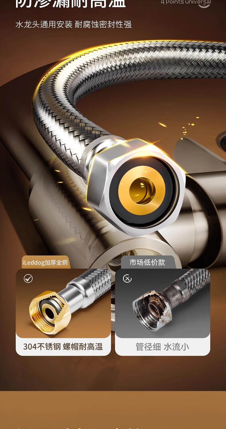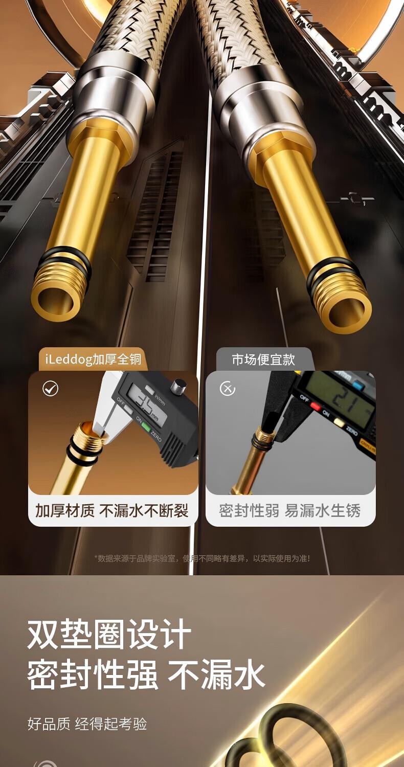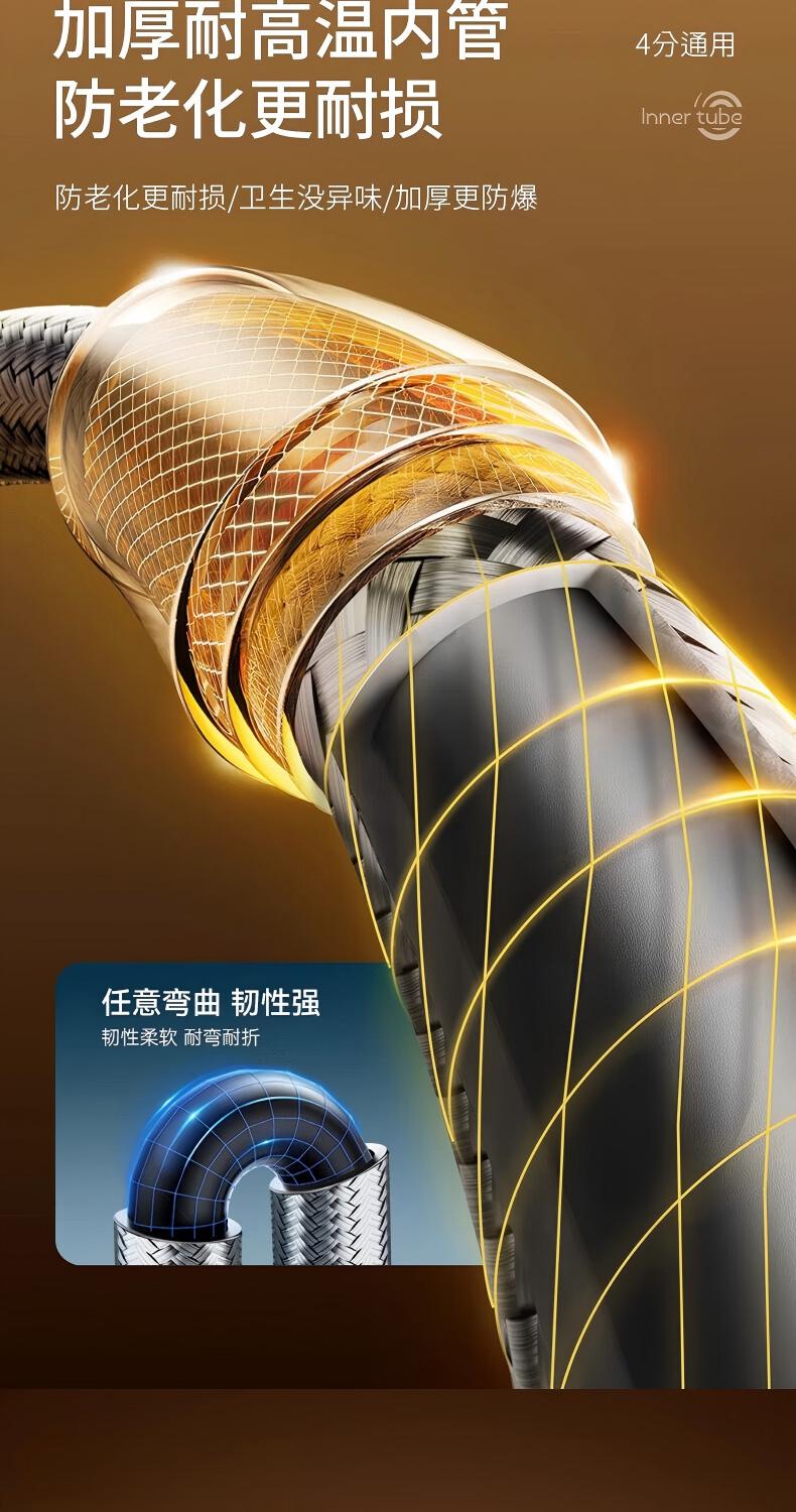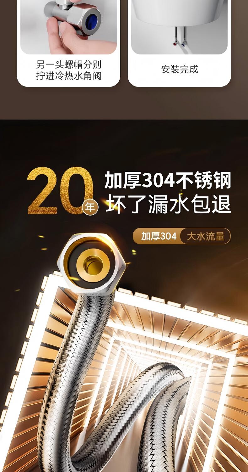 包装清单:1软管4分双头金属钢丝304不锈钢编织热水器马桶水龙头进水管花洒