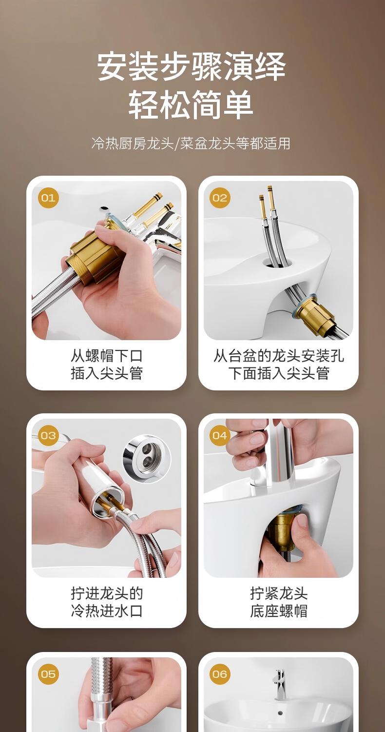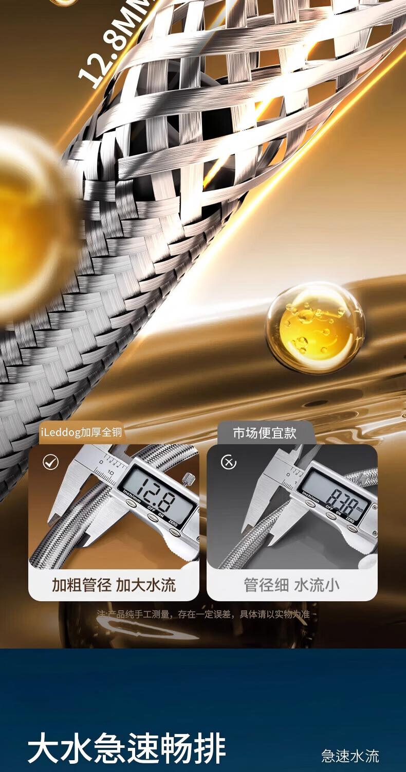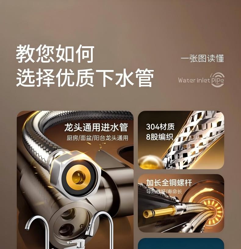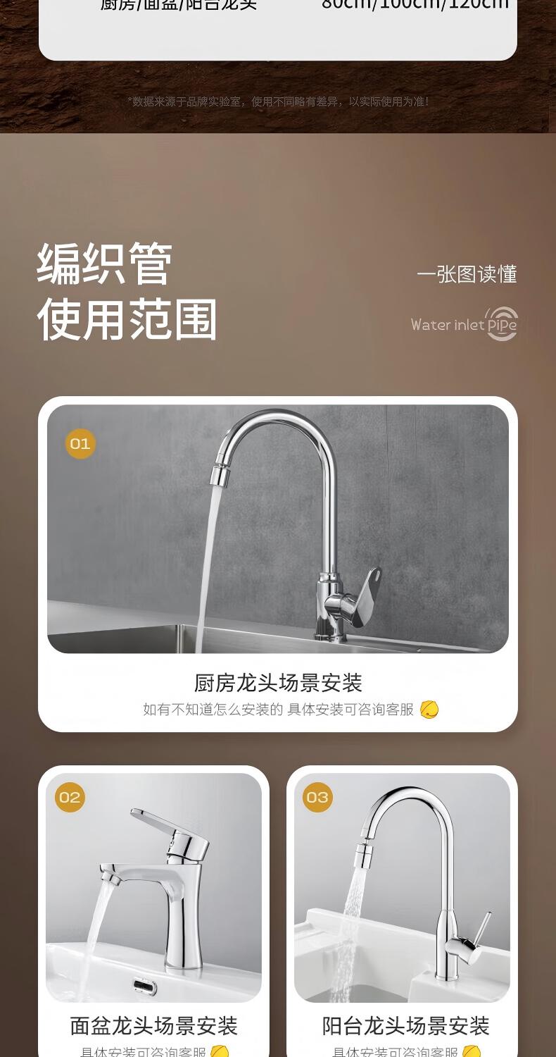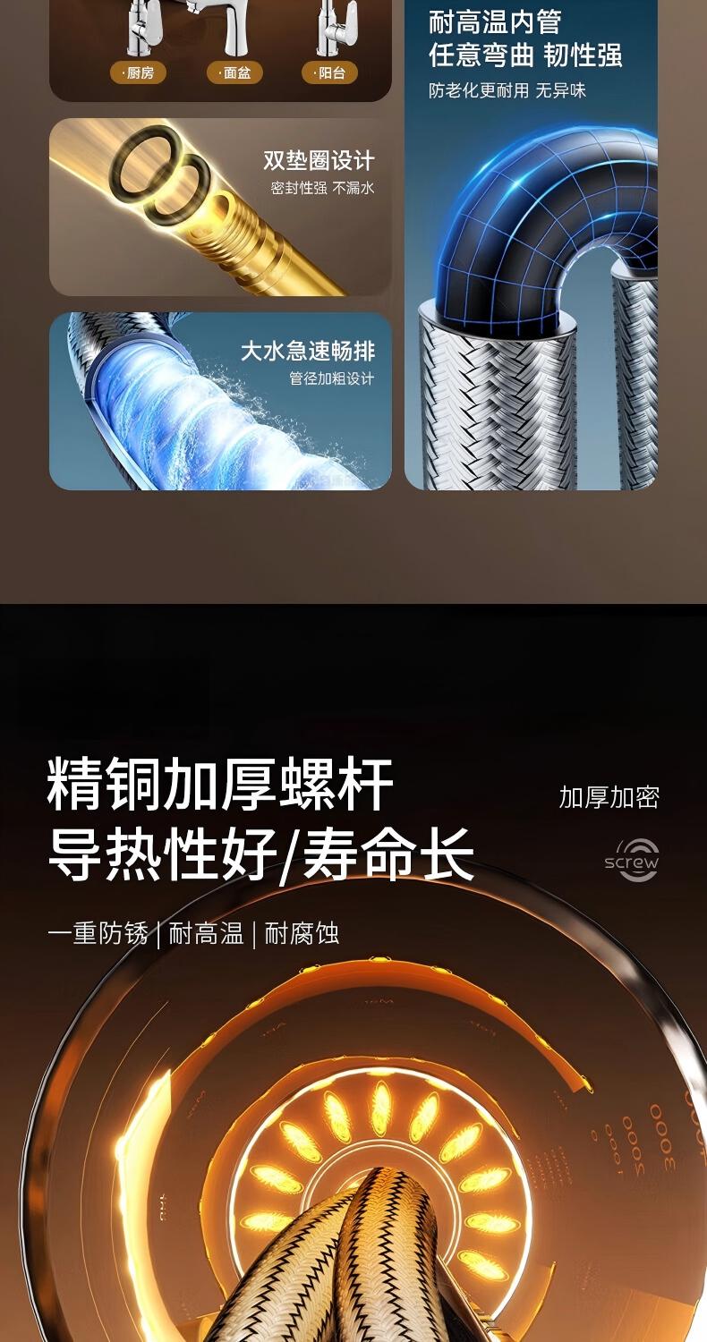 包装清单:1软管4分双头金属钢丝304不锈钢编织热水器马桶水龙头进水管花洒