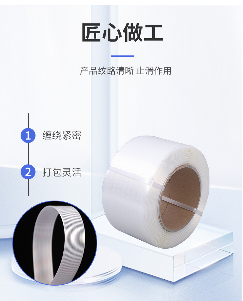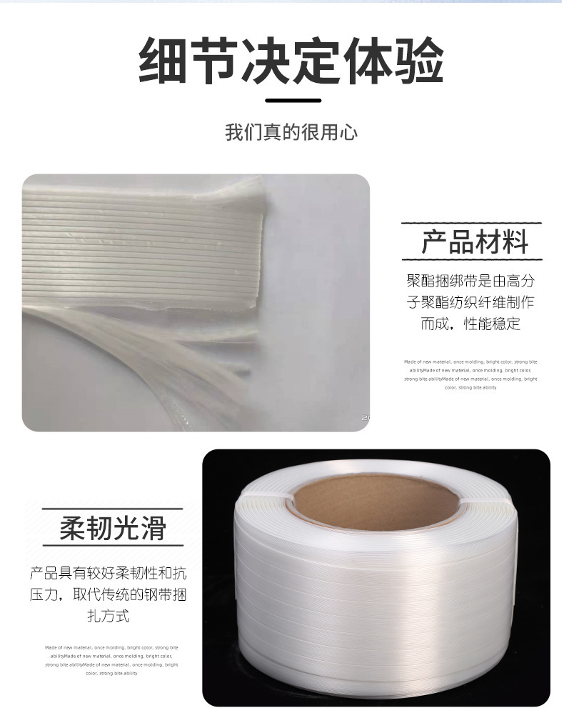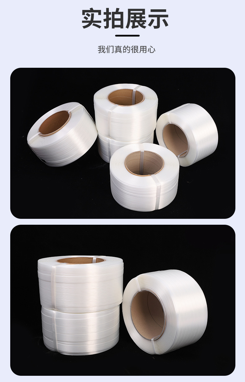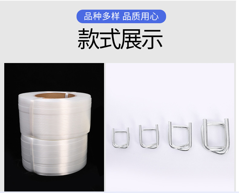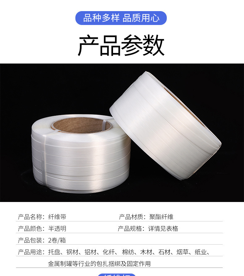 商品名称:纤维打包带 打包扣 pp重型纤维捆绑带 柔性聚酯纤维打包带捆绑带