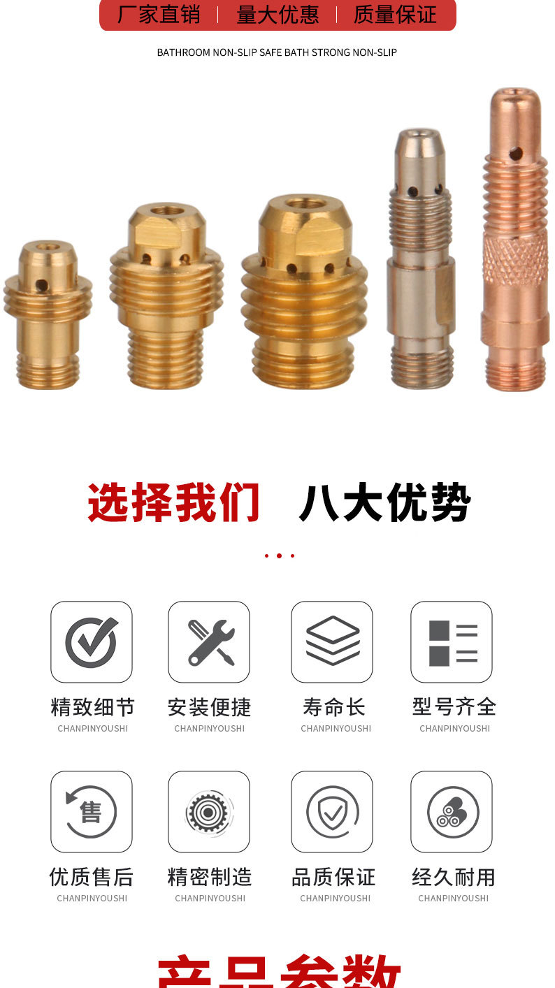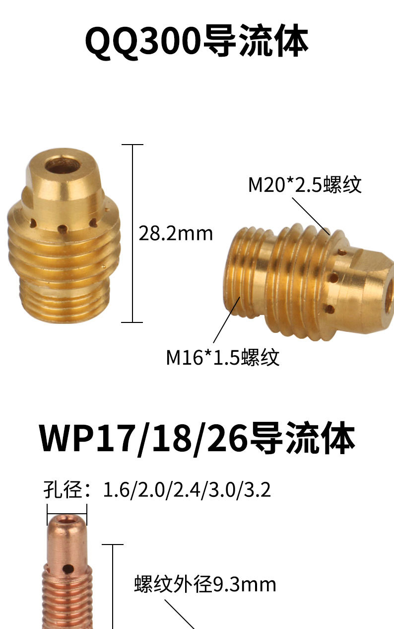 包装清单:1WP-17/18/26 QQ-150-1/200/300氩弧焊枪导流体 连接体 钨极夹座