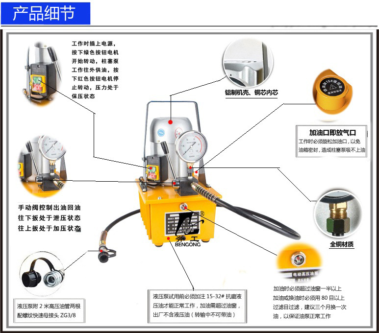 包装清单:1液压超高压油泵 电动液压泵浦 油压机 液压泵站 单油路电动泵