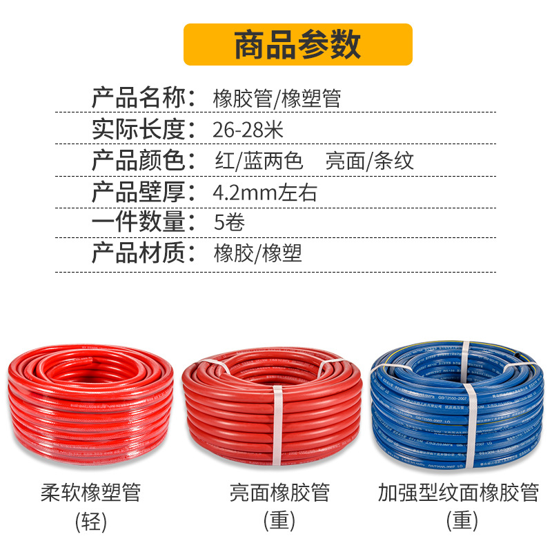 万日防爆氧气乙炔丙烷氩气软管8mm/10mm两胶一线光面耐高压工业橡胶管