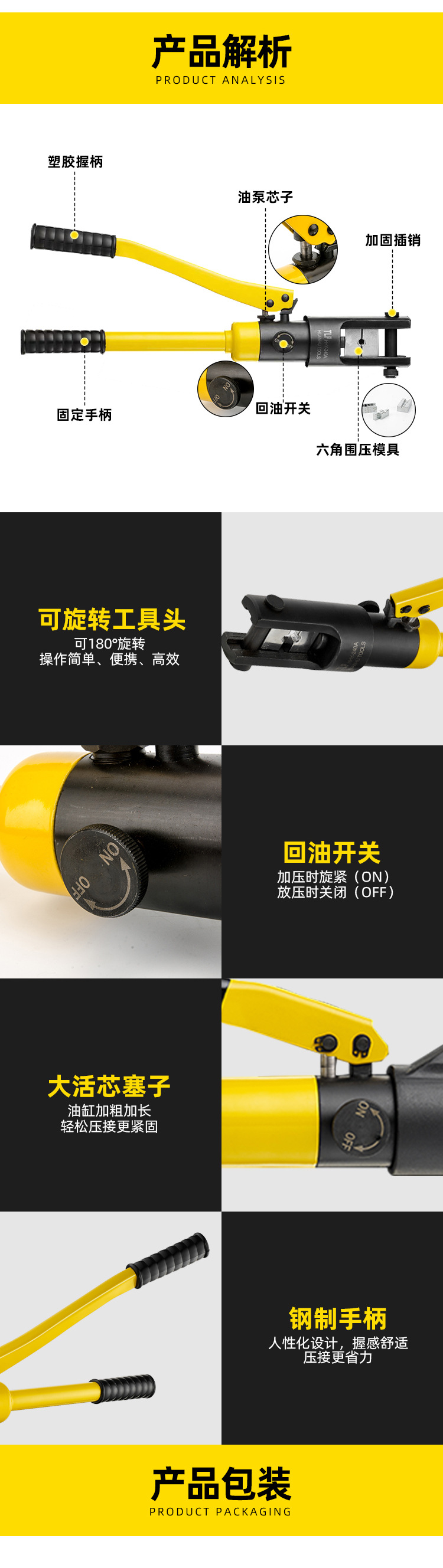 包装清单:1液压压线钳工具手动液压钳端子钳电工专用YQK-70液压压接钳