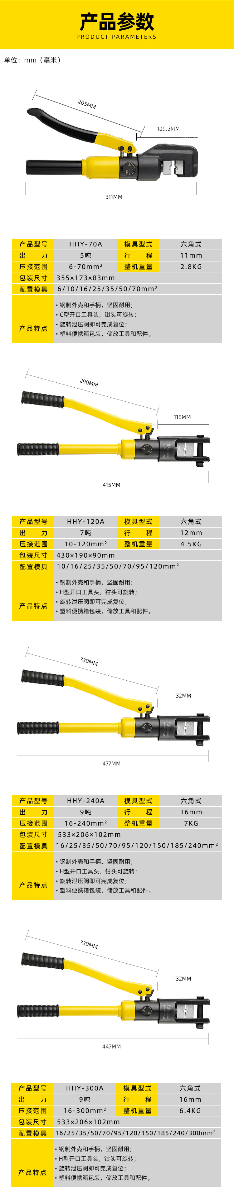 商品名称:液压压线钳工具手动液压钳端子钳电工专用YQK-70液压压接钳