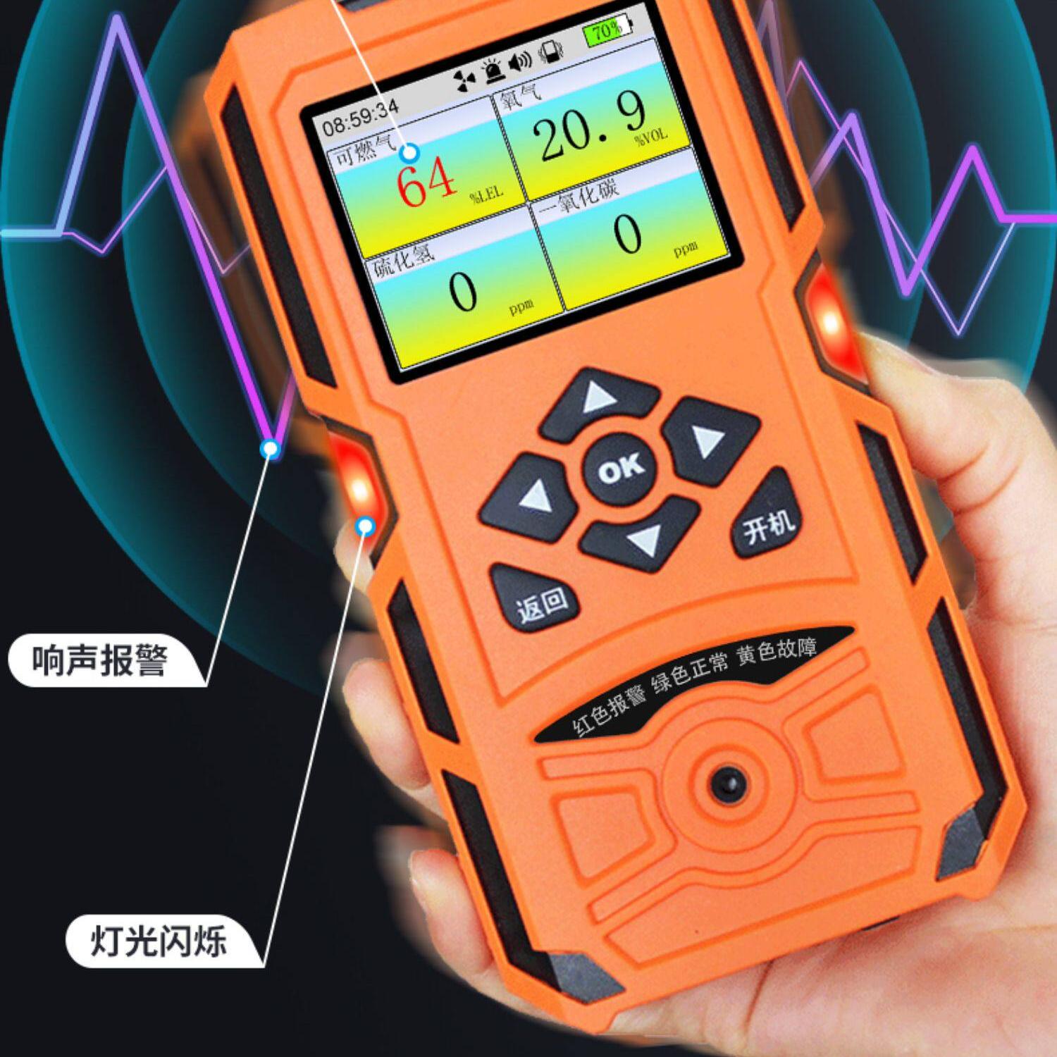 四合一气体检测仪便携式氧气CO硫化氢可燃有限空间浓度报警器 四合一(X-4+)