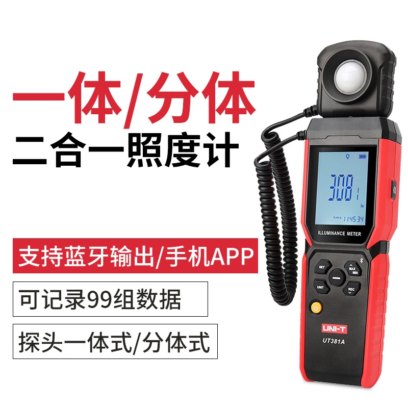 优利德UT381A分体式光照度计高精度光亮计蓝牙APP照度检测仪