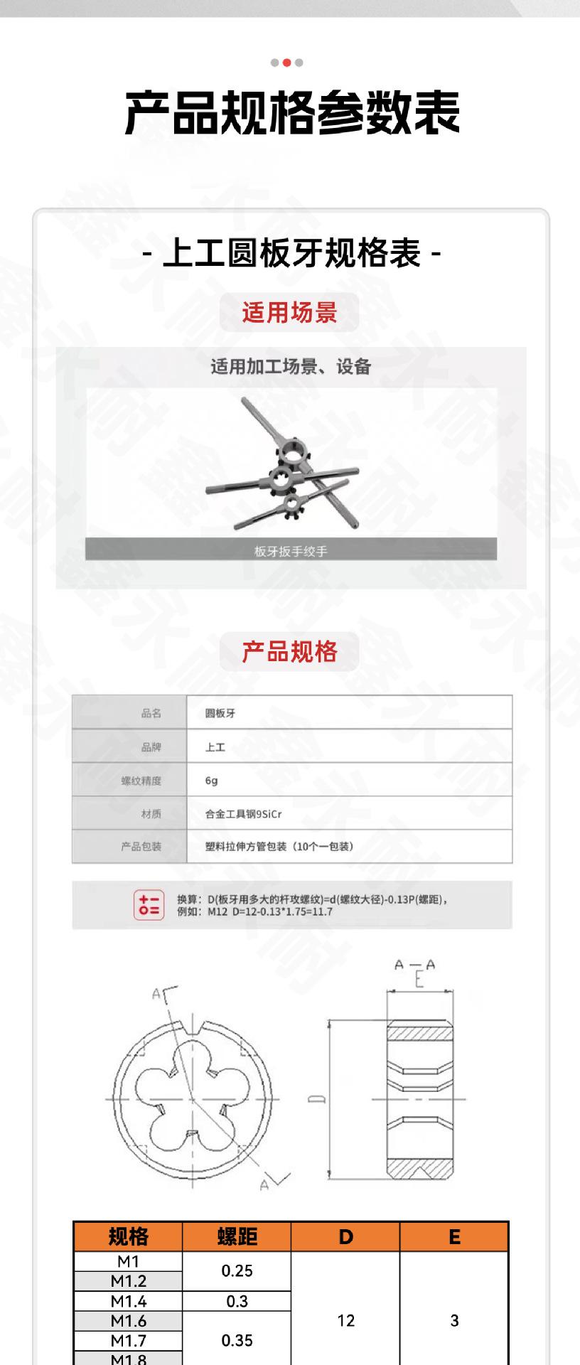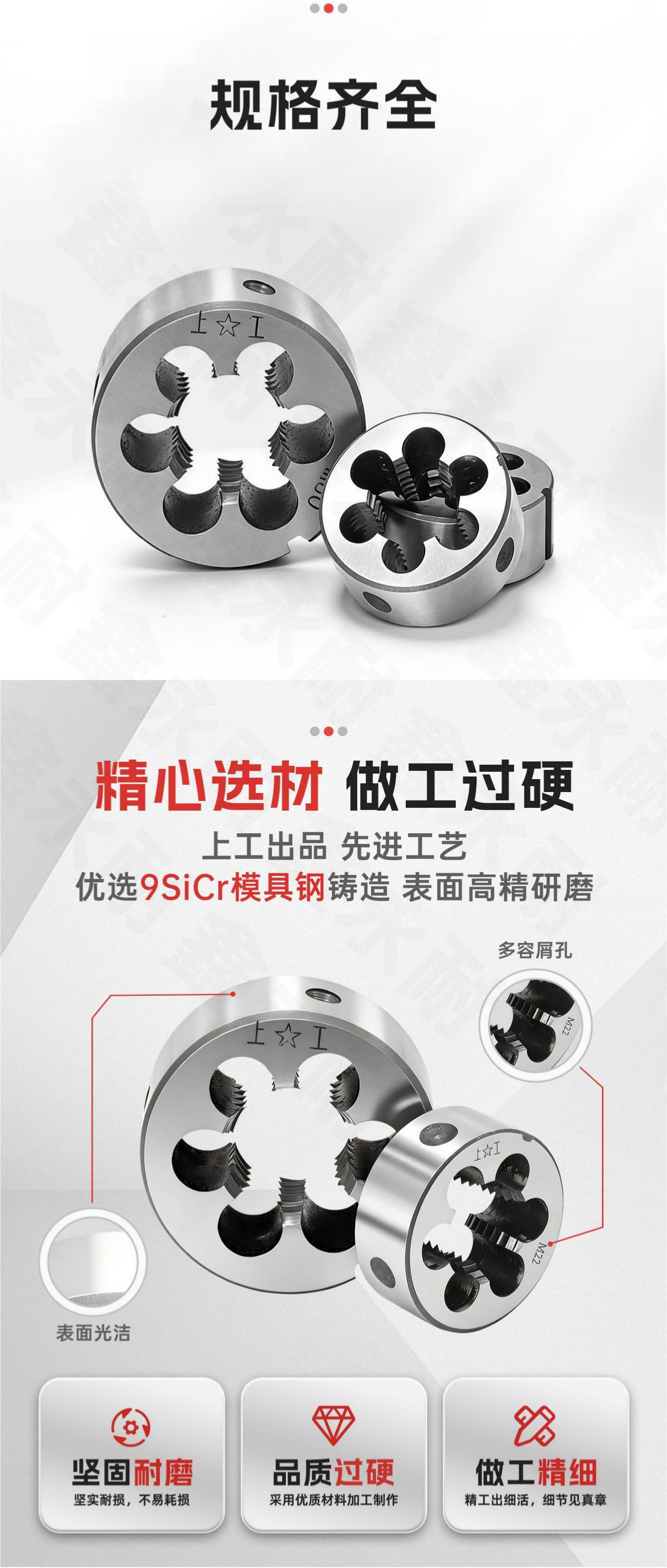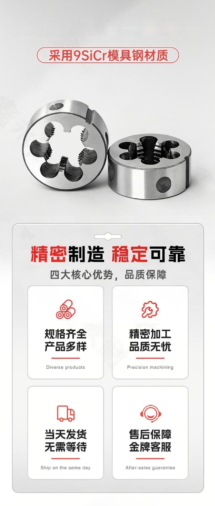 包装清单:1圆板牙 细牙板芽M3 5 7 8 9 10 12 14 16 18 20 2224mm