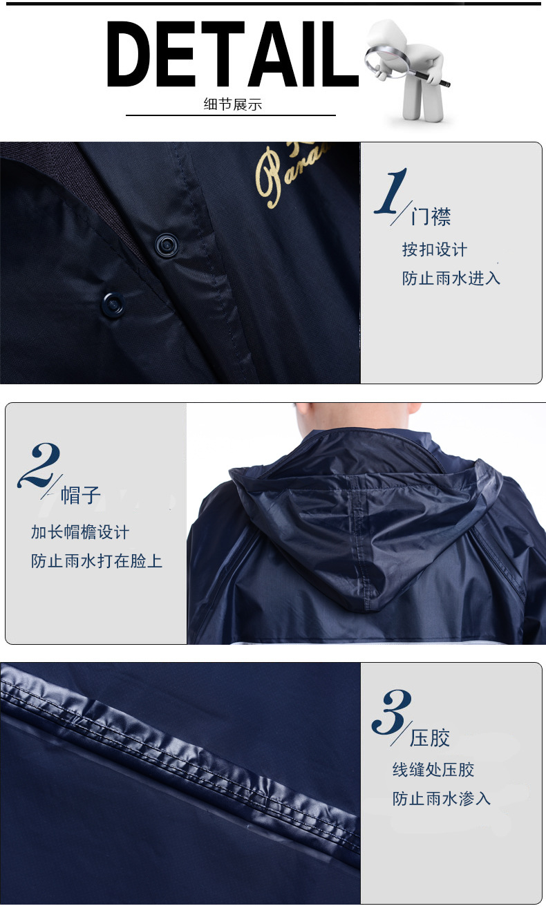 包装清单:1天堂连体雨衣NF-2尼龙绸男款风衣式连体雨衣男女款成人雨衣可印刷logo