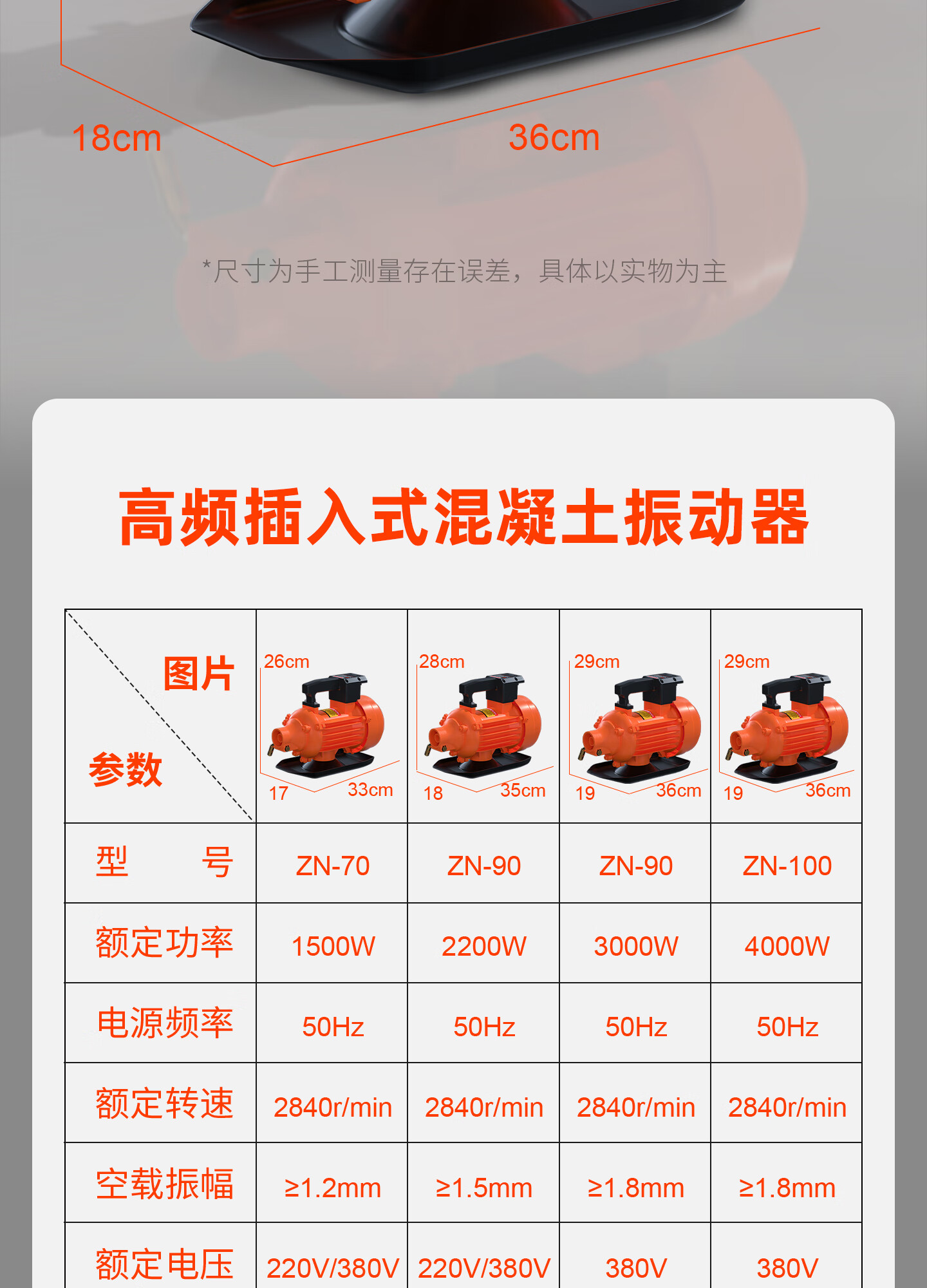 包装清单:1插入式混凝土振动棒单三相混泥土震动器大功率工地水泥振捣棒电机