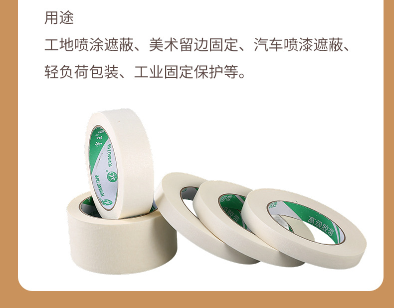 包装清单:1合恒工品高粘美纹纸胶带喷漆装潢遮蔽单面美纹胶纸美术分色皱纹纸强力
