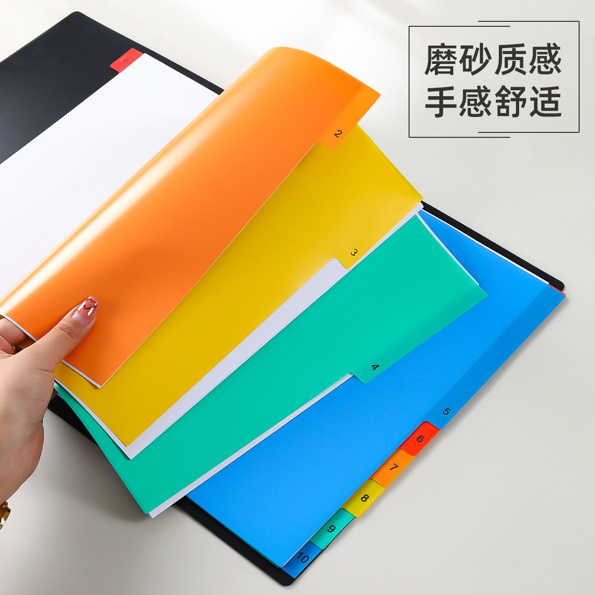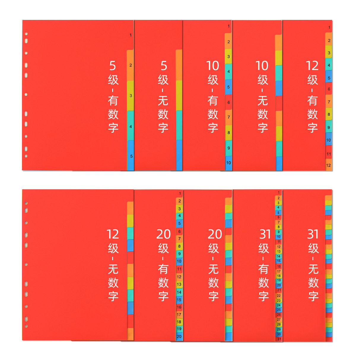 A4索引纸数字隔页纸11孔塑料分页纸pp彩色分类纸多页打孔文件夹用活页夹彩色分页纸标签书签