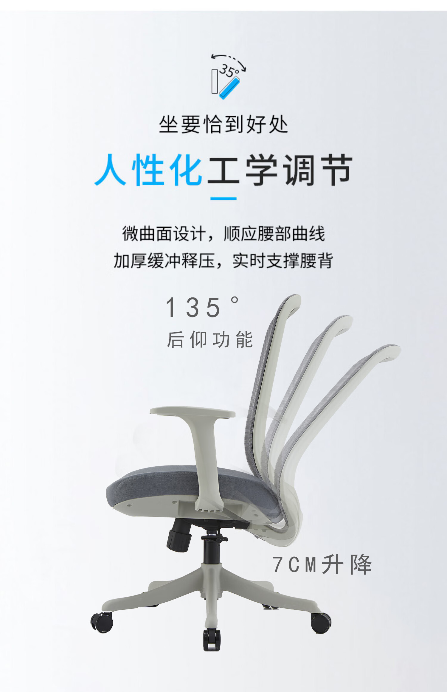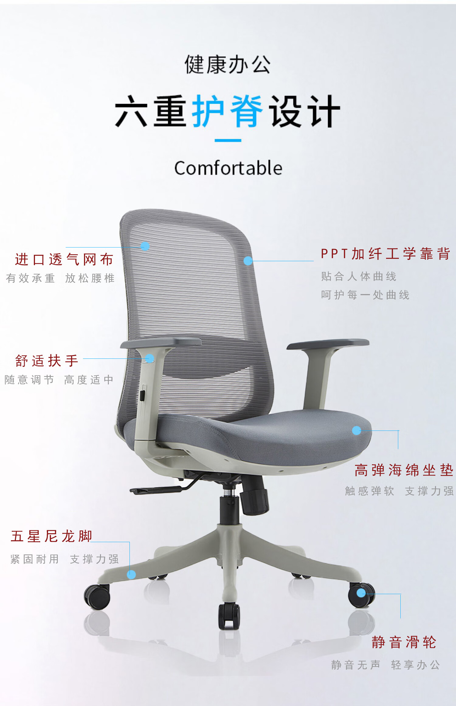 商品名称:职员办公椅舒适久坐人体工学电脑椅家用靠背护腰转椅简约椅子