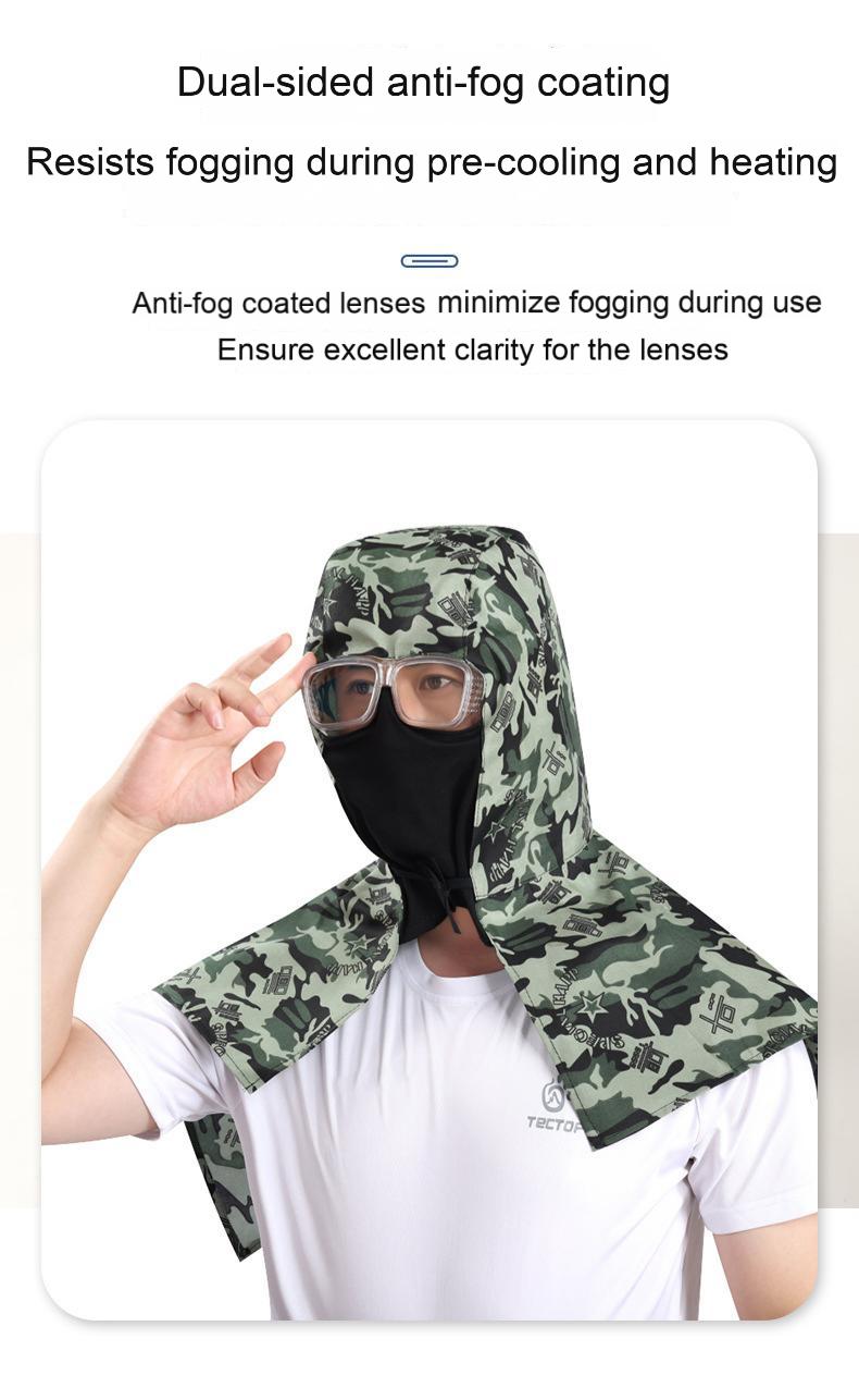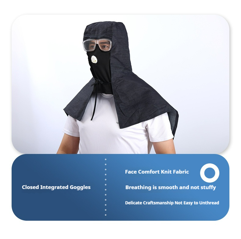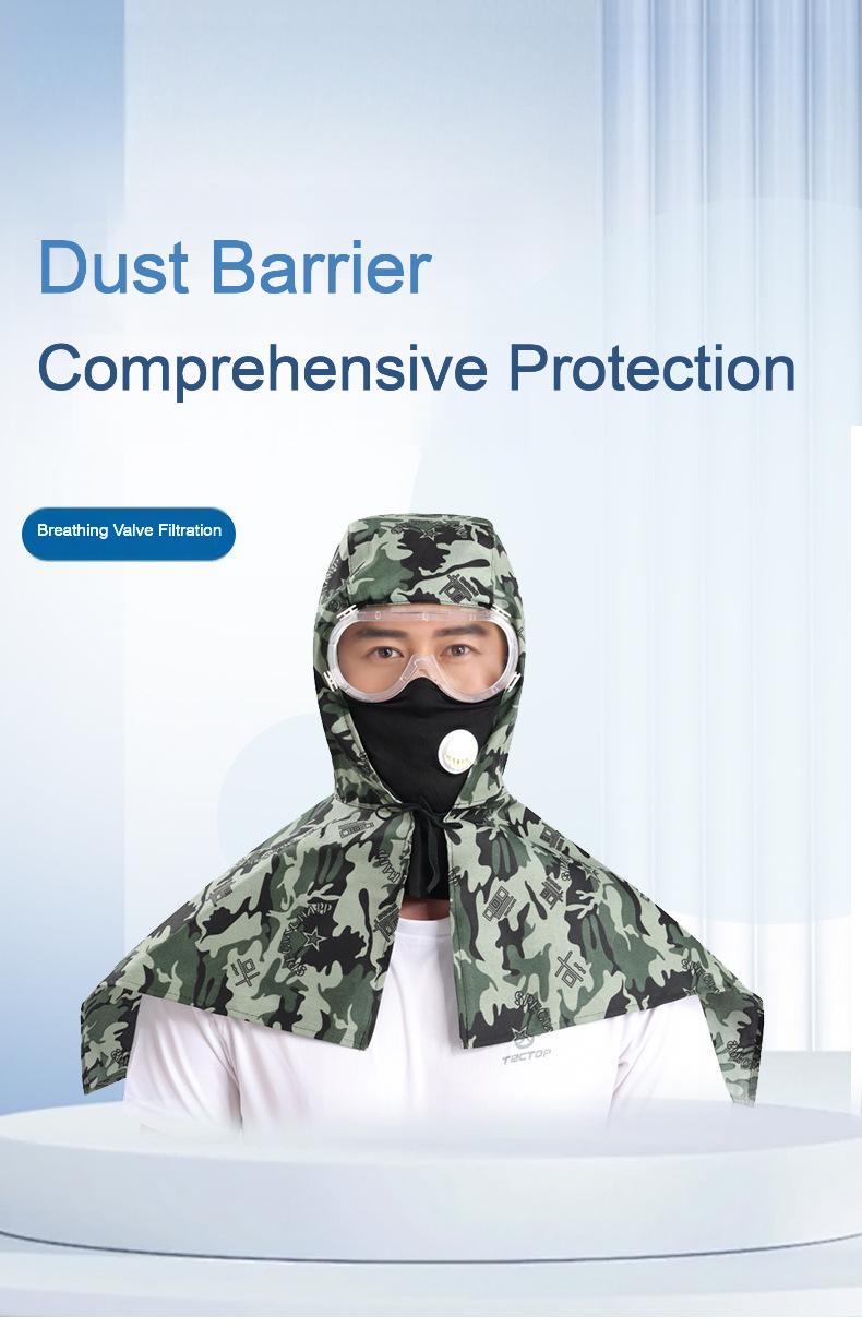 Dust-proof hood with head protection, shawl cap, large eye shield, breathable valve, unisex design, safety workwear, sun protection hood, wind cap