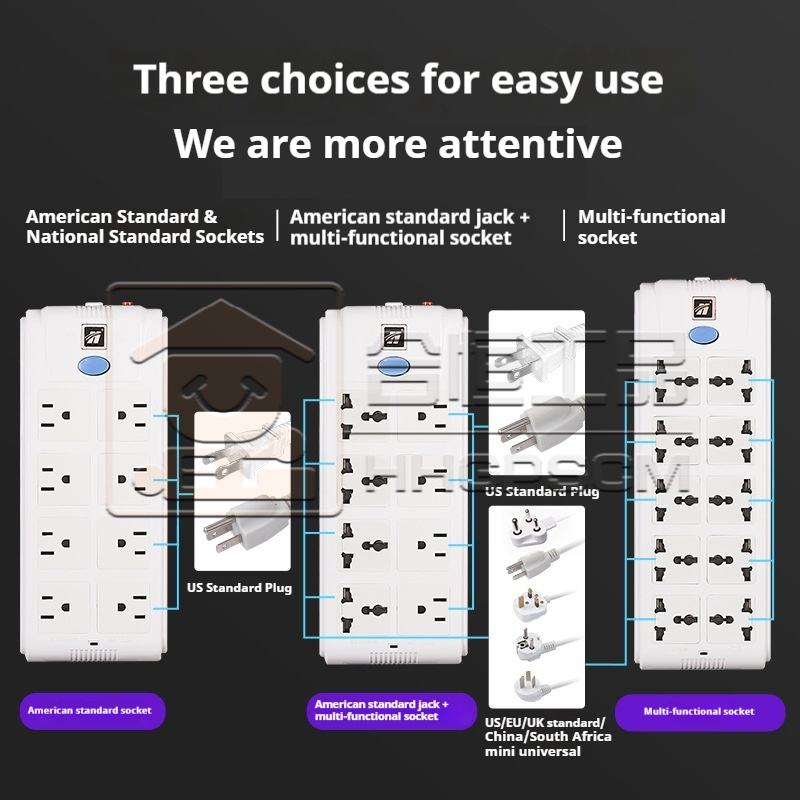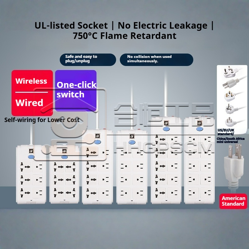US Standard Socket, US Standard Power Strip, Double Row, US Standard Power Strip with Overload Extension Cord
