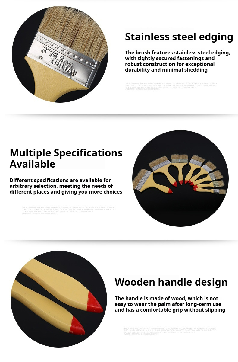 Product name:Pig bristle brushes Industrial wooden-handled brushes Bristle brooms Barbecue brushes Glue brushes Pure pig-bristle paintbrushes