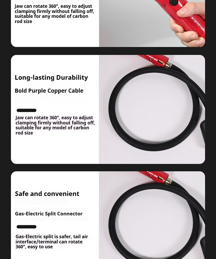 Product name:Carbon arc gouging torch head with lead wire 600A carbon arc gouging torch Gouging tongs Carbon gouging rod