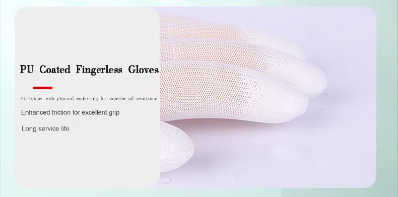 Packing list:1 Polyester gloves with PU-coated palms, polyester gloves 23cm with rubberized palms