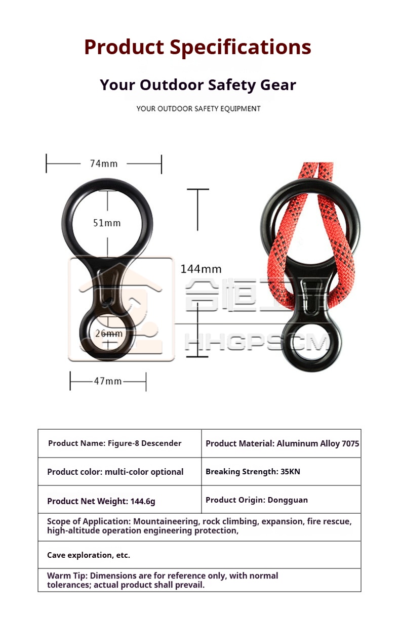 Packing list:1Outdoor Rock Climbing Figure-8 Descender for Rock Climbing and Mountaineering: Aluminum Alloy Figure-8 Descender for High-Altitude Speed Control