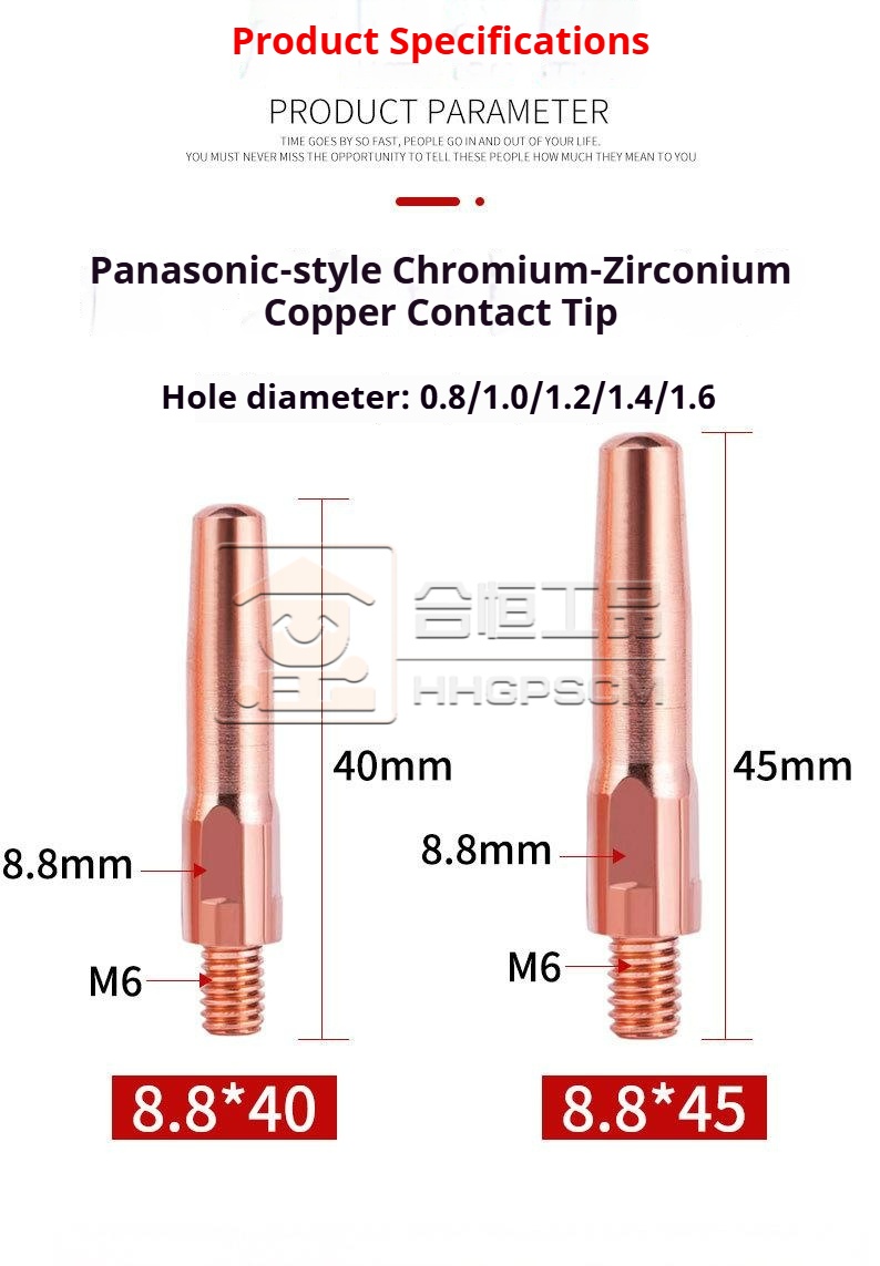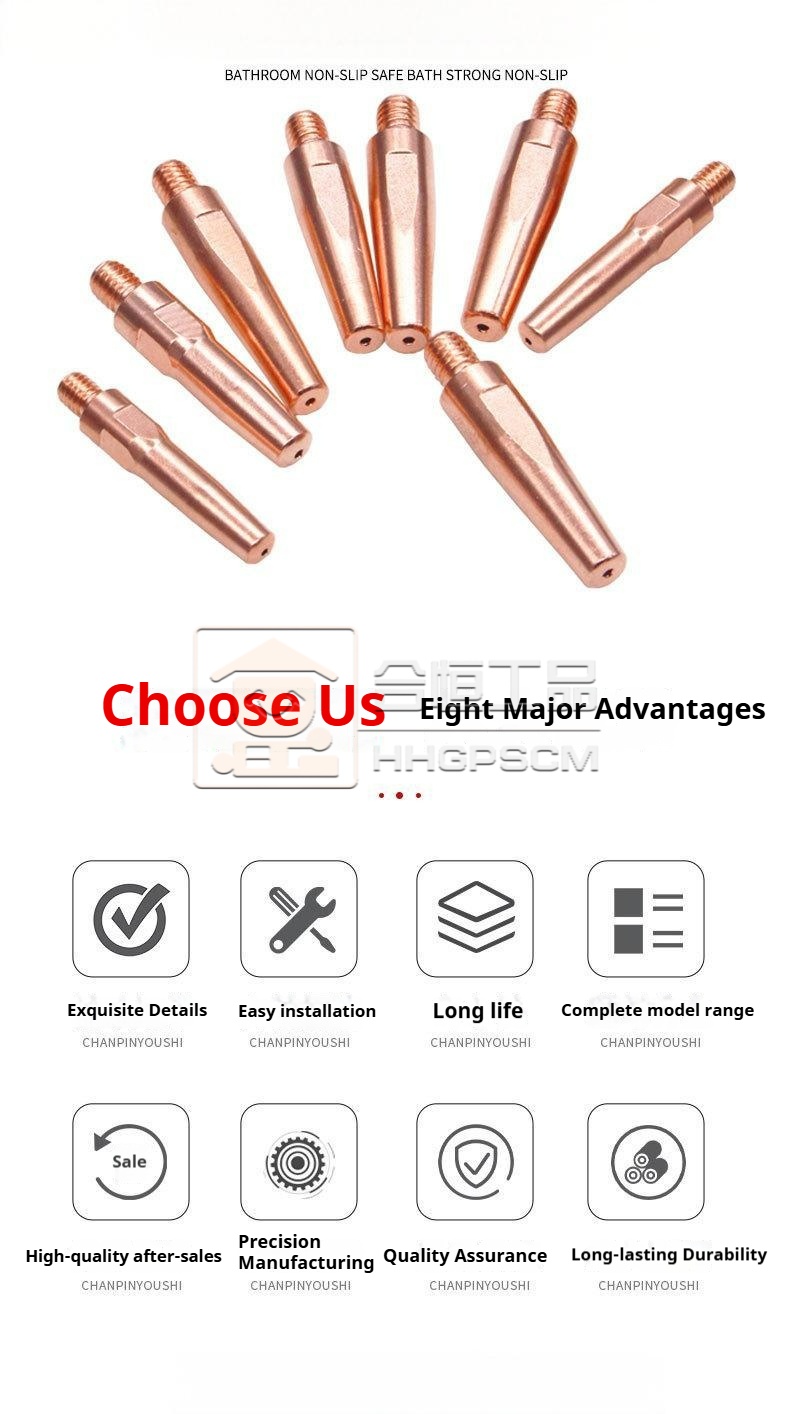 Grade 8.8 Chromium-Zirconium Copper Conductive Nozzle M6 Gas Shielded Welding Gun Precision-Turned Guide Wire Nozzle Heavy-Duty Copper Robot Wire Feeding Nozzle