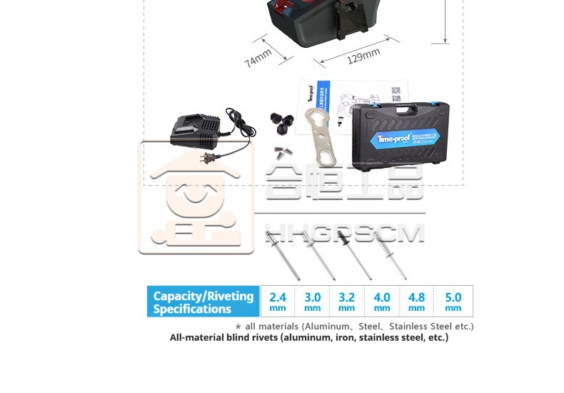 Packing list:1TDC5000 Electric Rivet Gun Lithium-Ion Rivet Gun Electric Riveting Tool