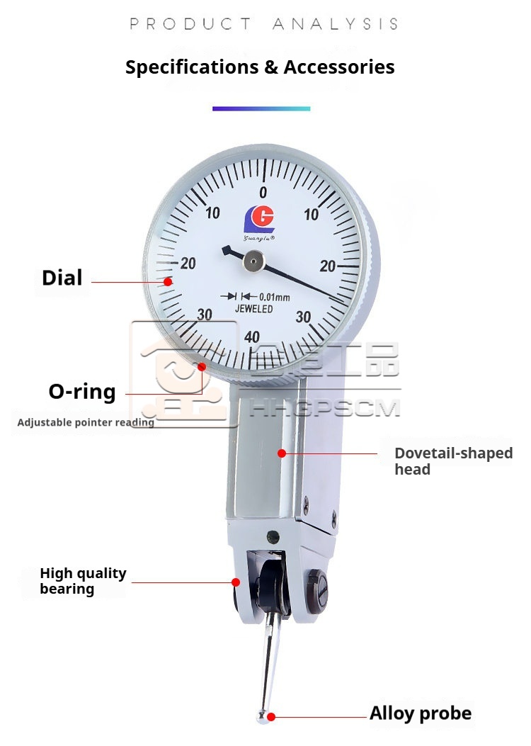 Packing list:1Lever Dial Indicator 0-0.8mm Small Calibration Dial Indicator with Shock Protection Lever Micrometer 0-0.2mm