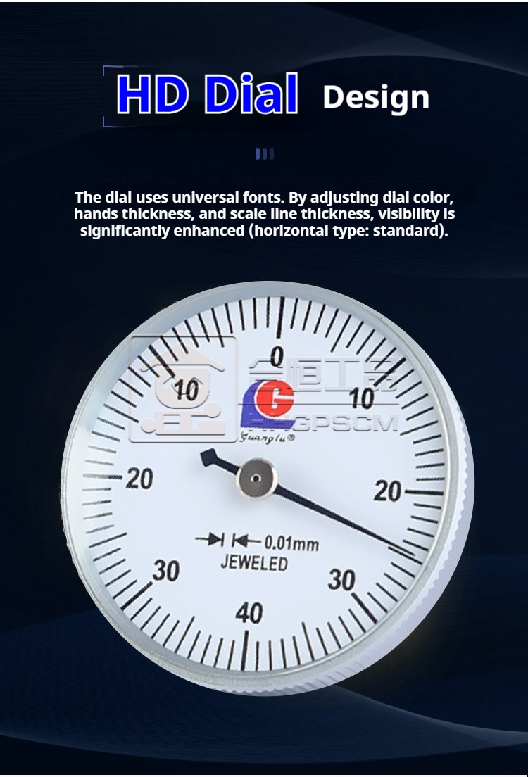 Product name:Lever Dial Indicator 0-0.8mm Small Calibration Dial Indicator with Shock Protection Lever Micrometer 0-0.2mm