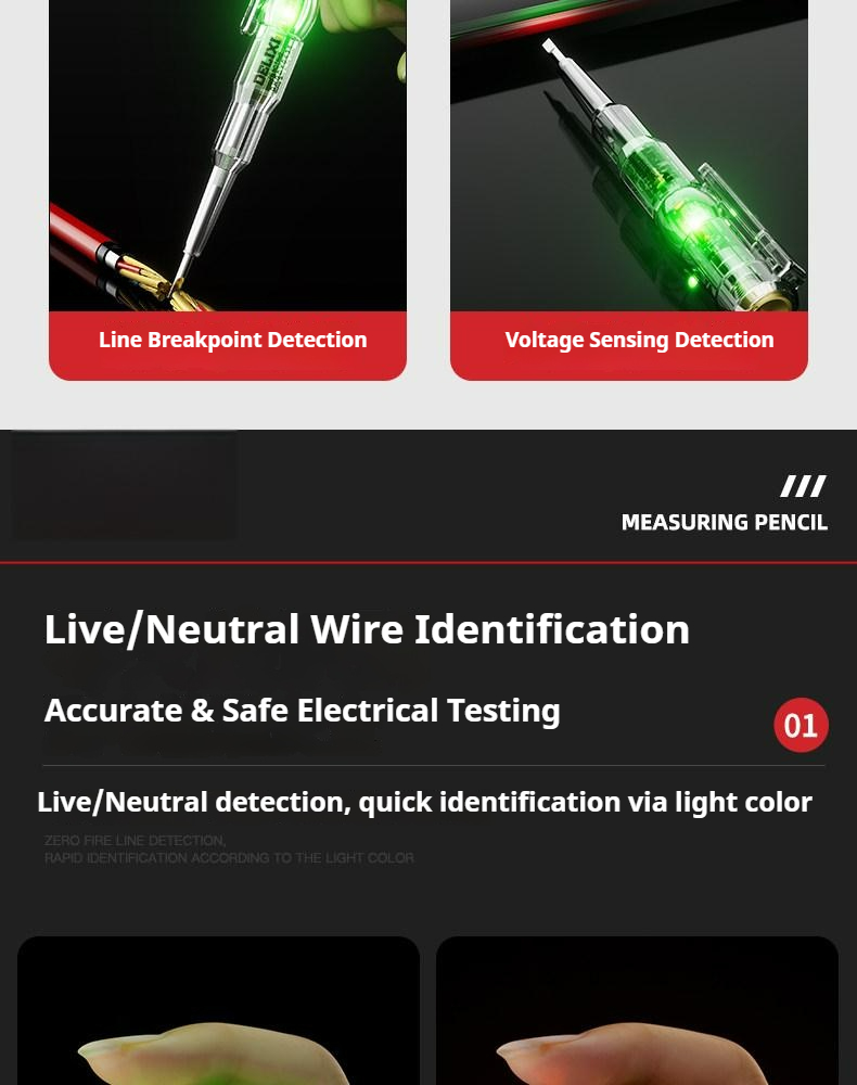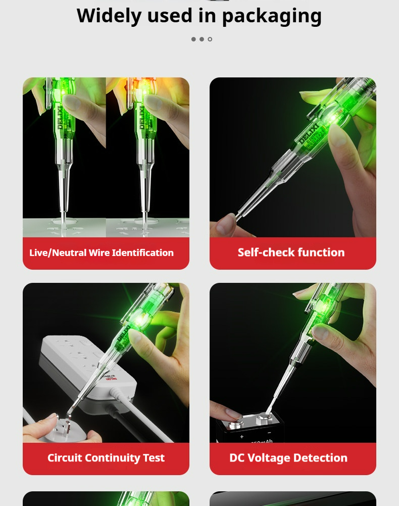 Packing list:1Electrical Tester Electrician's High-Brightness Color Light Voltage Detector Smart Sensing Circuit Breaker Tester Smart Voltage Tester