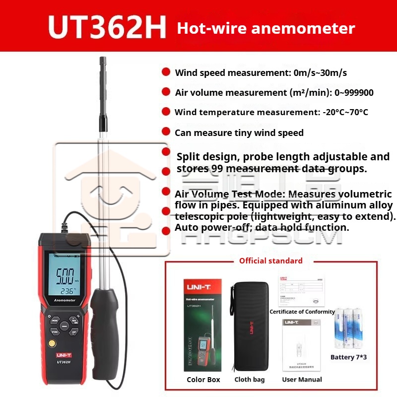U-Lite UT362H High-Precision Split-Type In-Duct Anemometer for Measuring Indoor and Outdoor Air Velocity, Airflow, and Air Temperature
