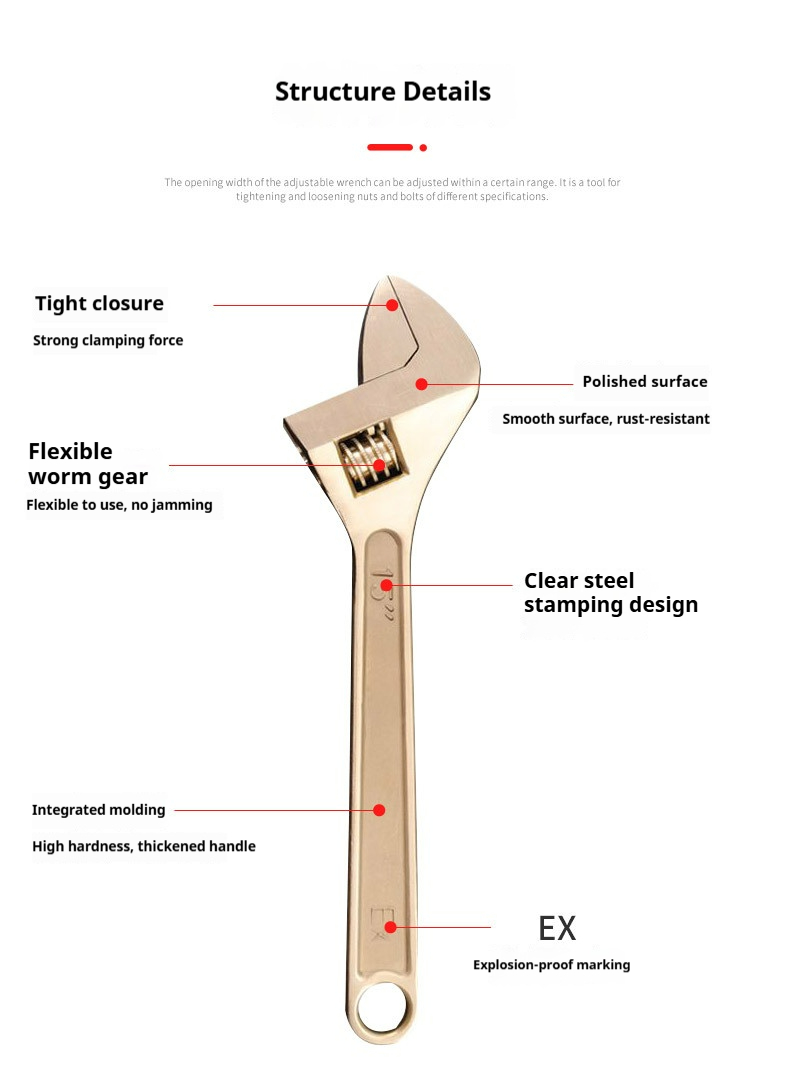 Product name:Explosion-Proof Adjustable Wrench Multi-Function Industrial-Grade Copper Alloy Adjustable Wrench Household Hardware Tool