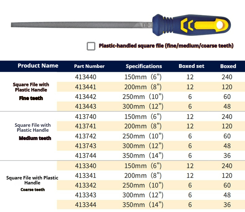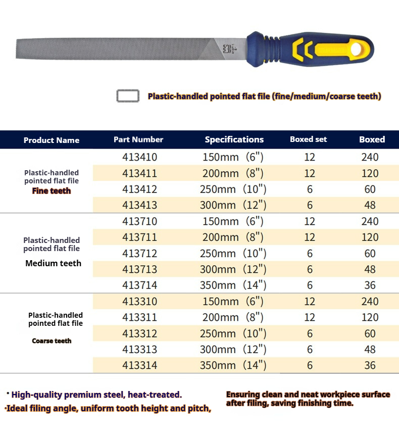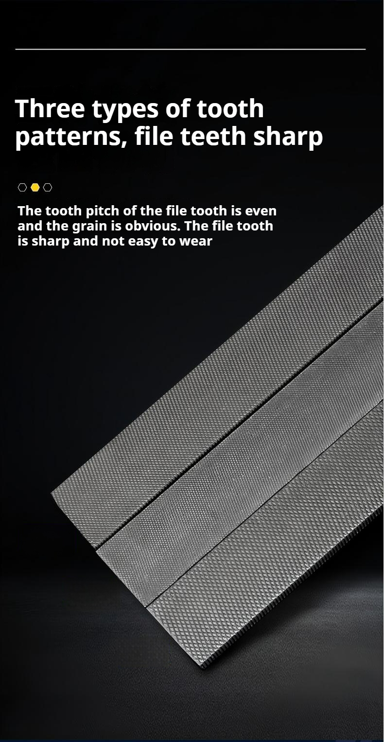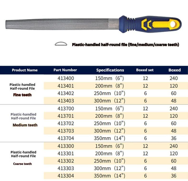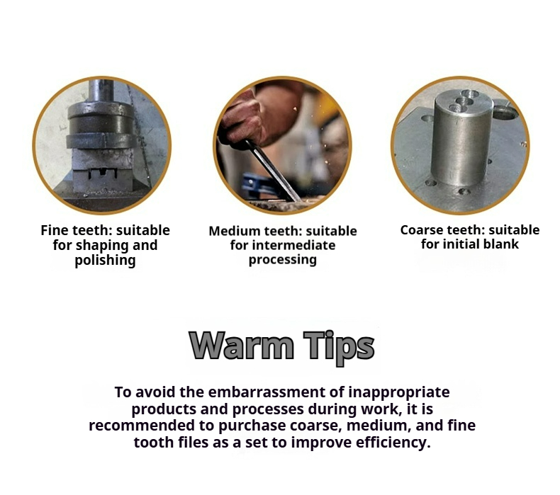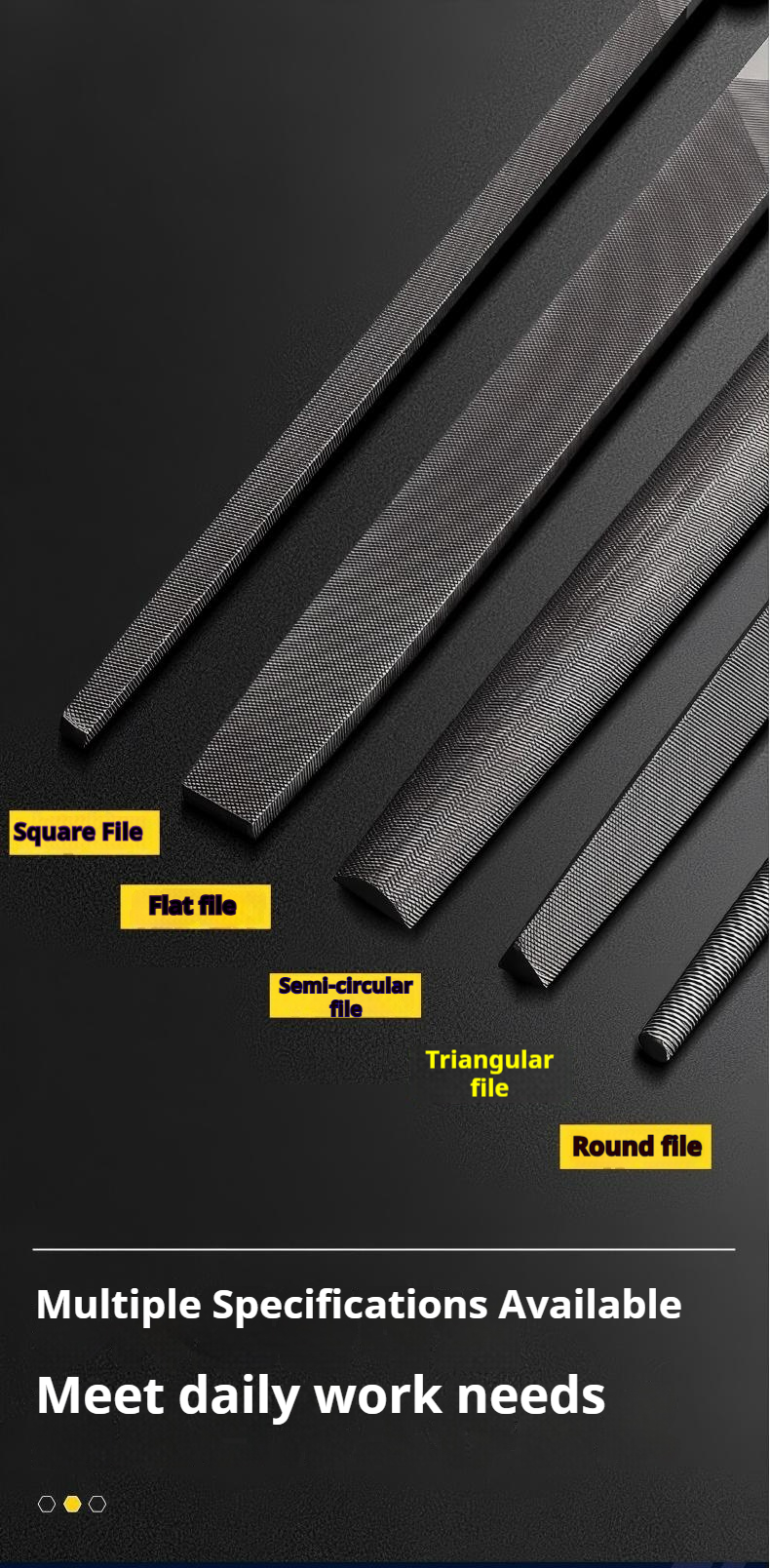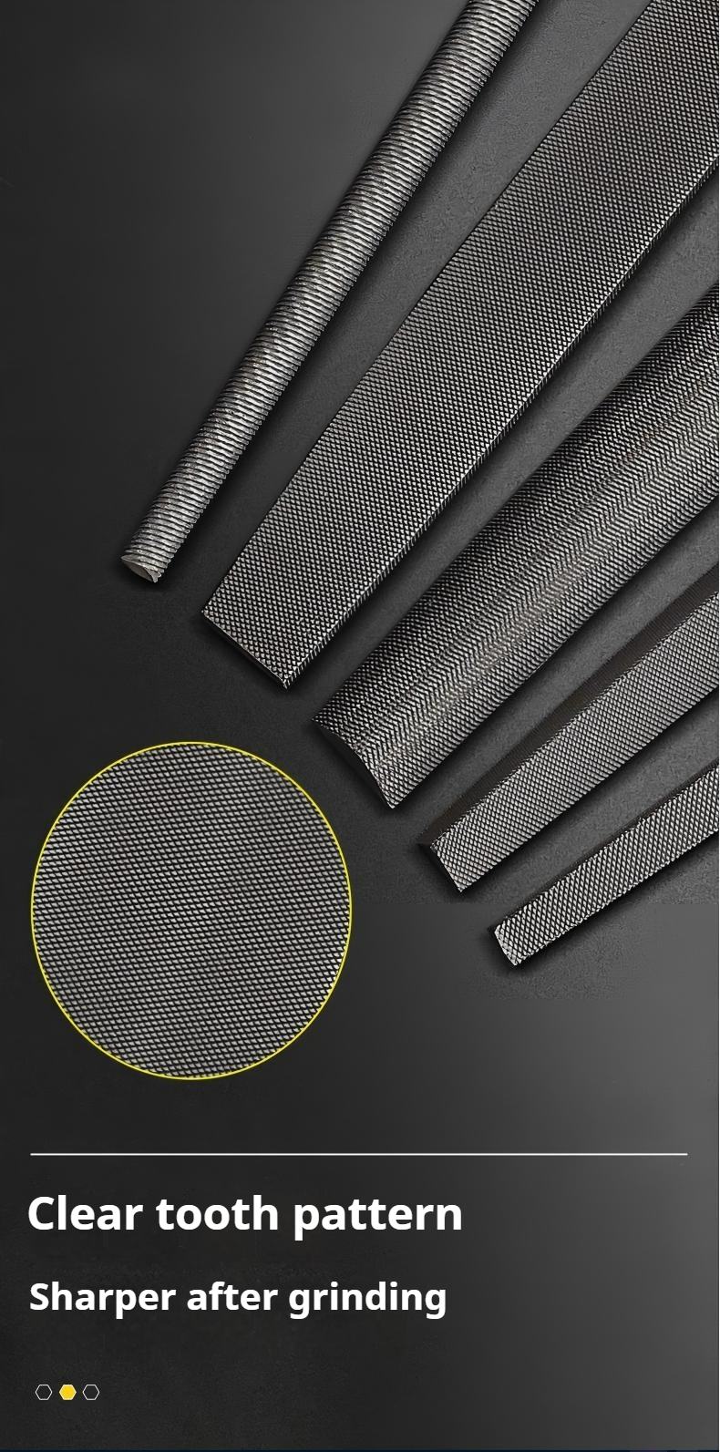 Packing list:12Plastic-handled fine-tooth round file Steel flat file with fine, medium and coarse teeth Metal and woodworking grinding tool Flat rasp, 12/14 inches