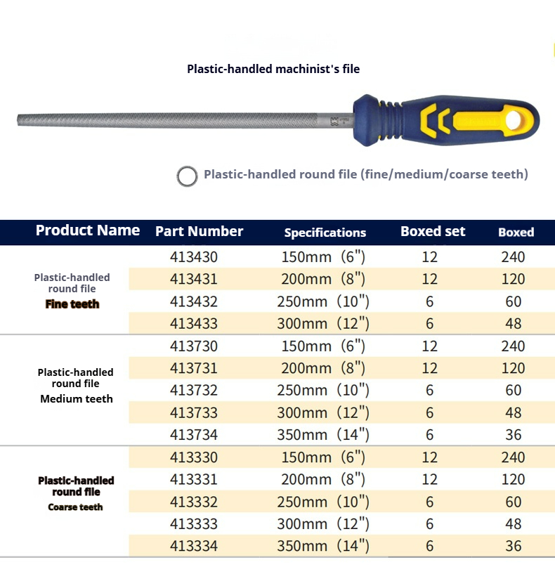 Product name:Plastic-handled fine-tooth round file Steel flat file with fine, medium and coarse teeth Metal and woodworking grinding tool Flat rasp, 12/14 inches