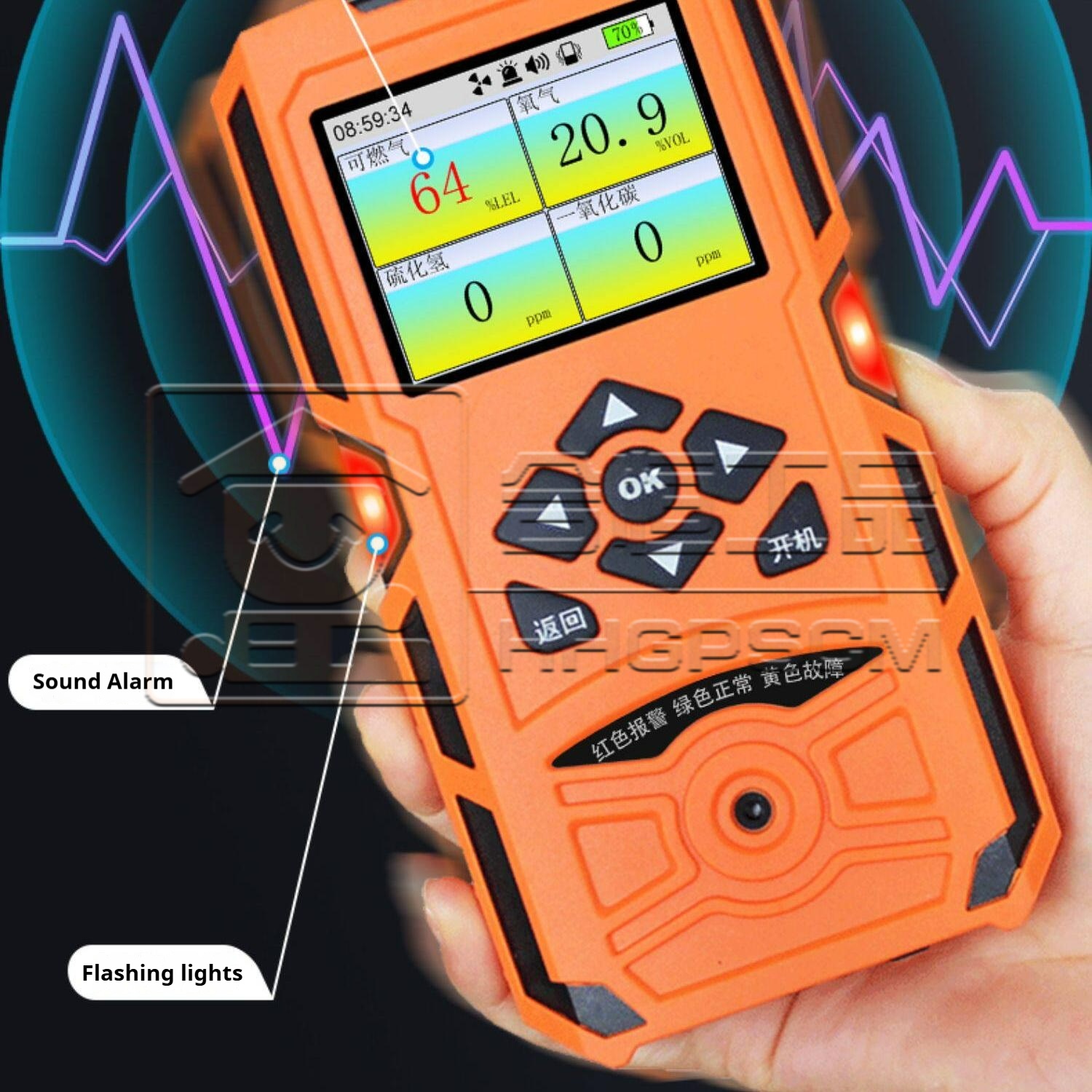 Four-in-One Gas Detector: Combustible, Oxygen, Carbon Monoxide, Hydrogen Sulfide, Confined Space Hazard Gas Alarm